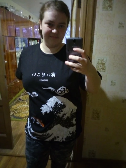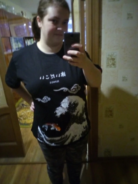 It was 5 days, T-shirt cotton, very afraid that there will be synthetics. Print sticker, let's see what will happen after washing. I'll add it. The teenager liked it. Height 170, weight 55.