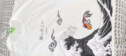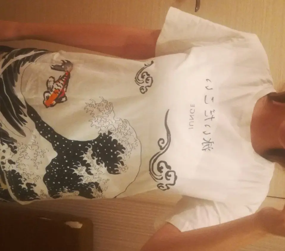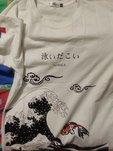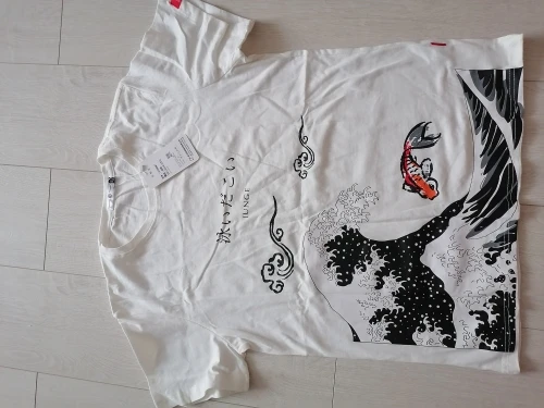 The print of the T-shirt is not inlaid in the fabric, it's a shame. This gives a "rigid plastic" effect on the area of the pattern... The size and cut are perfect.