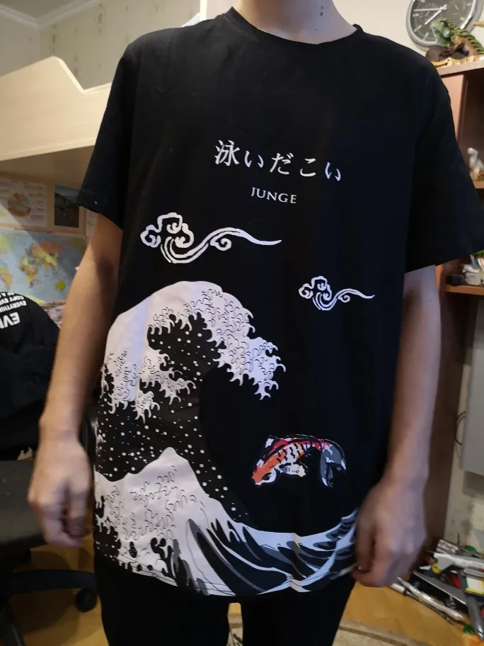 T-shirt is cool, but the print is heavy, I hope that after washing will not crack. With the store did not communicate