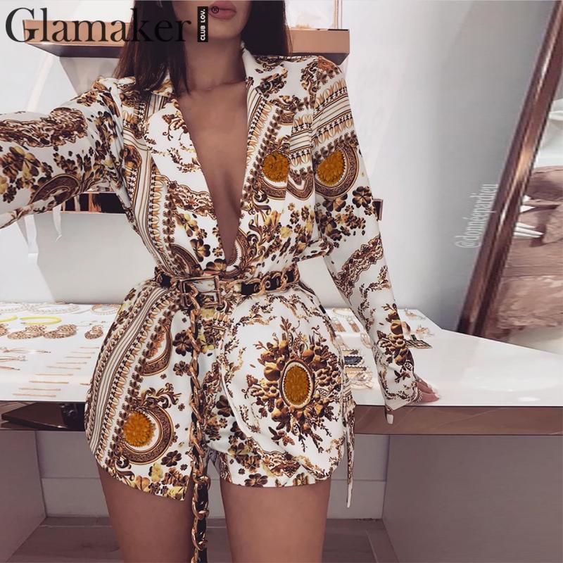 Gold Floral Printed Short Jumpsuit Two Piece JKP3898