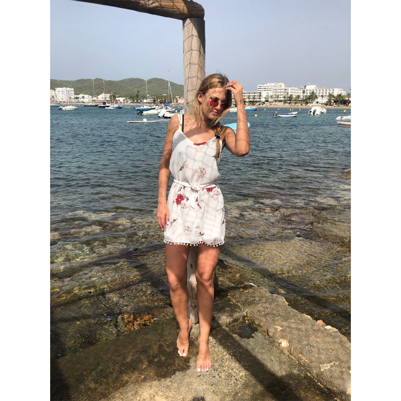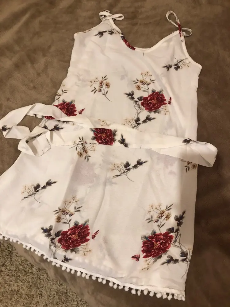 GOOGLE TRENDS Women Summer Boho White Floral Satin Print Spaghetti Strap Short Dress JKP3765
