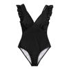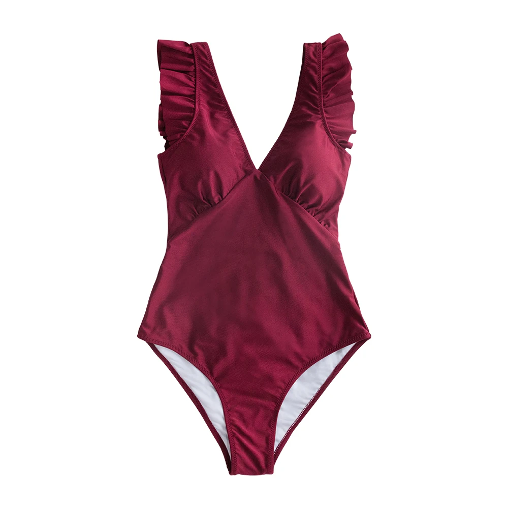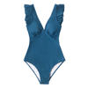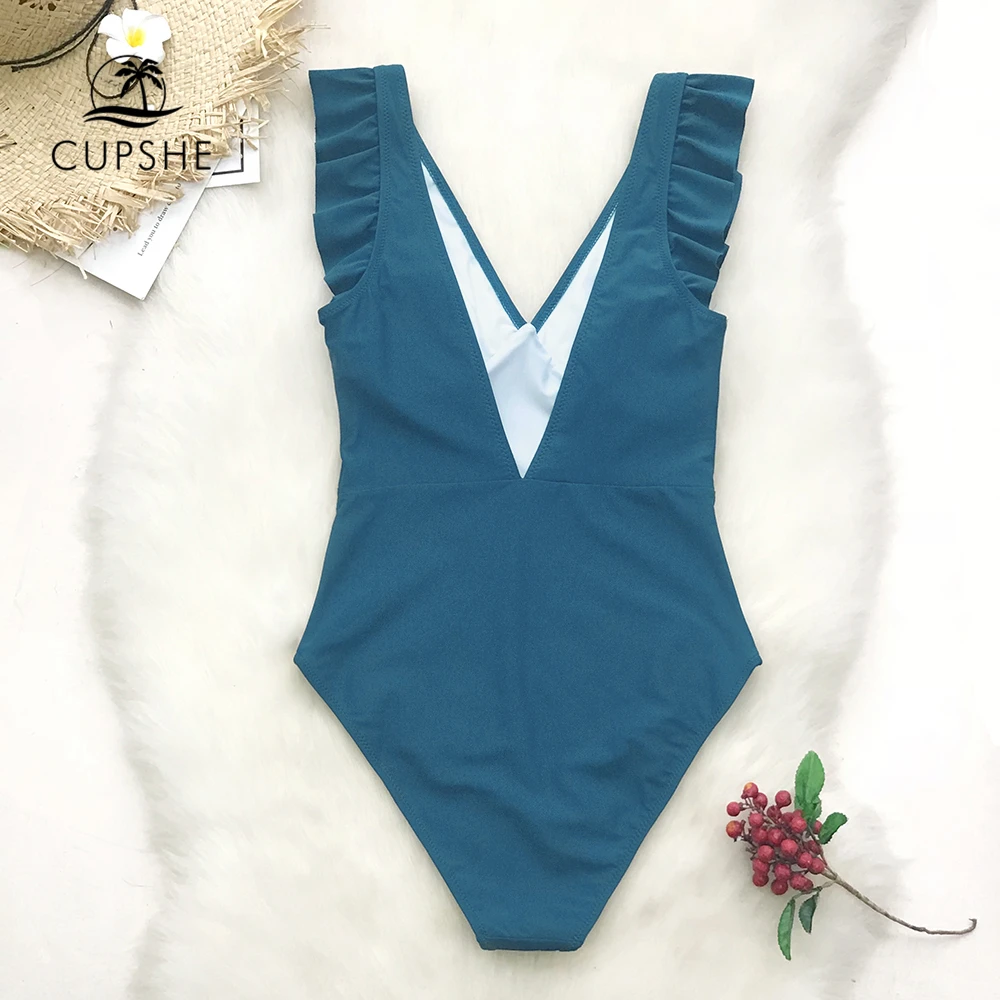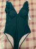 Green Teal Plunging Solid One Piece Swimsuit Ruffle Ruched Monokini