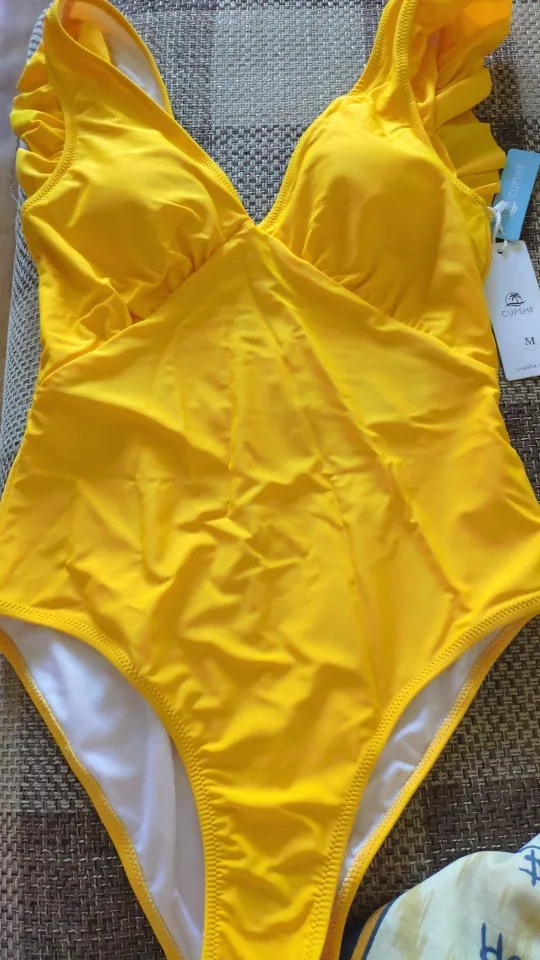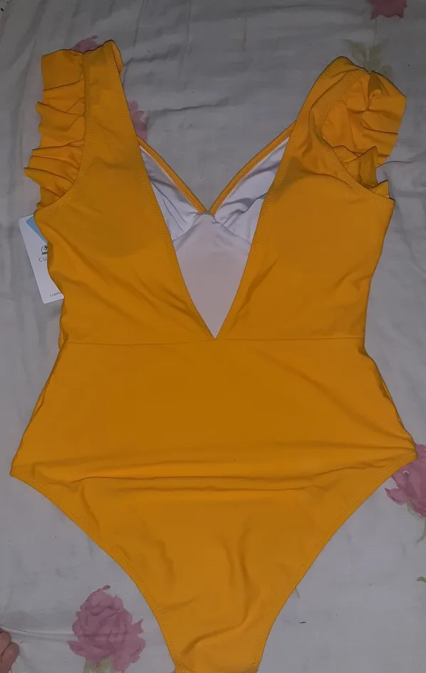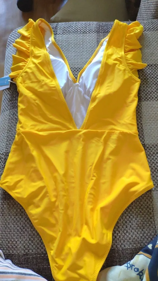The swimsuit is the same as the photo, bright! Packed was in a beautiful zip bag. In size came, the buttocks area is more open than in the usual swimsuit, but not much. The back is open. Recommend store and goods