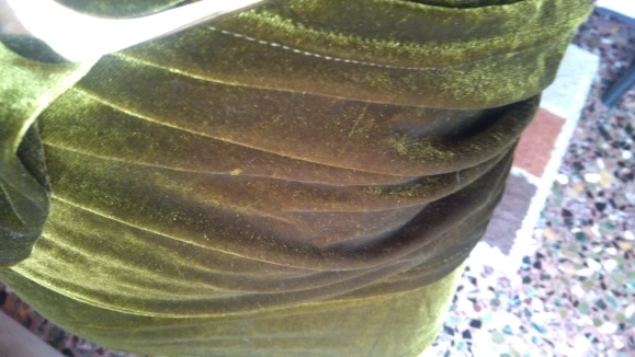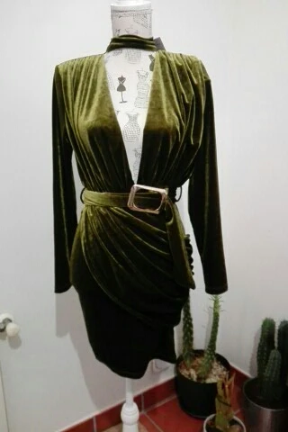 Article as it comes in the photo, of musy good material, very pronounced neckline, very soft suede garment, with shoulder pads, size corresponds to description, very happy with this garment. Seller 100% recommended.