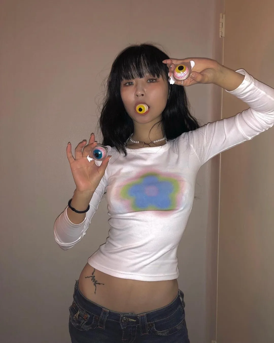 Grunge Streetwear Aesthetics Graphic T Shirt Crop Tops Long Sleeve Gradient Printed JKP6129