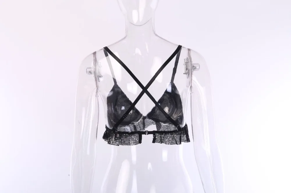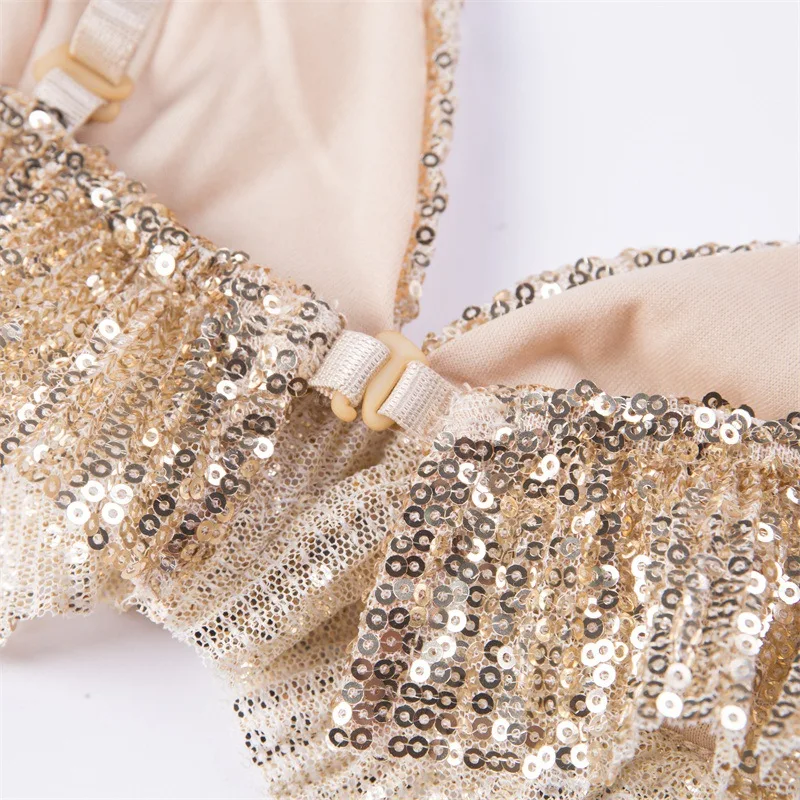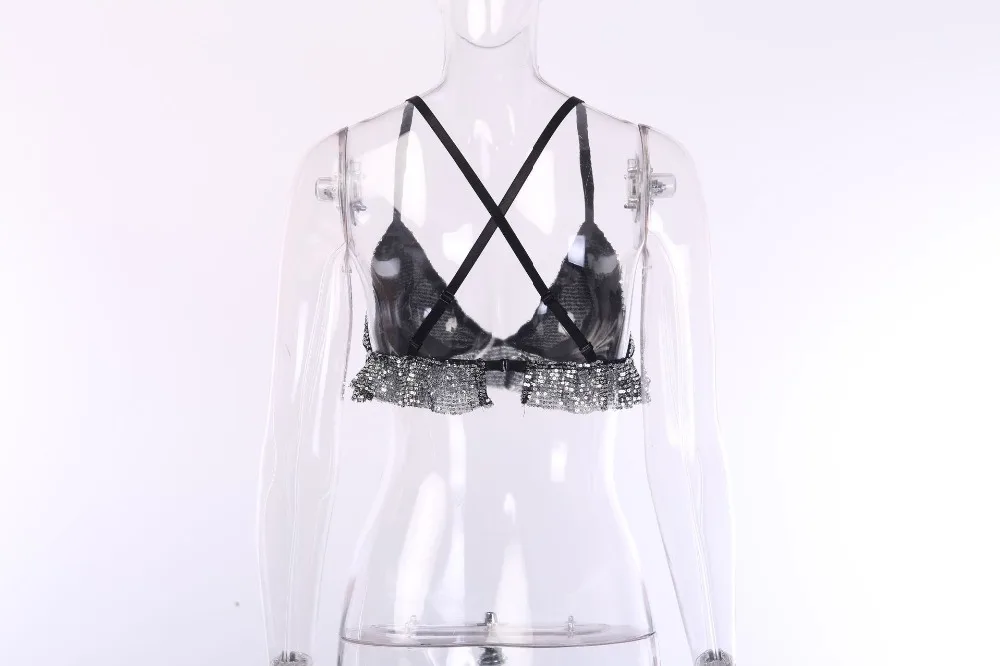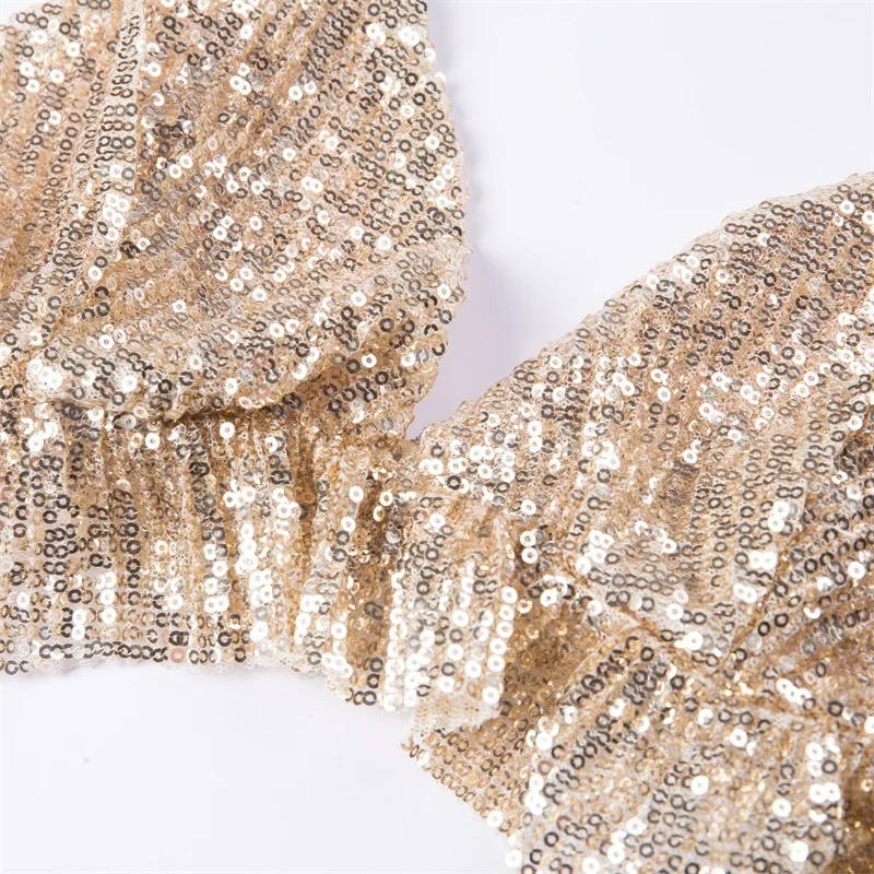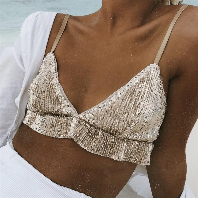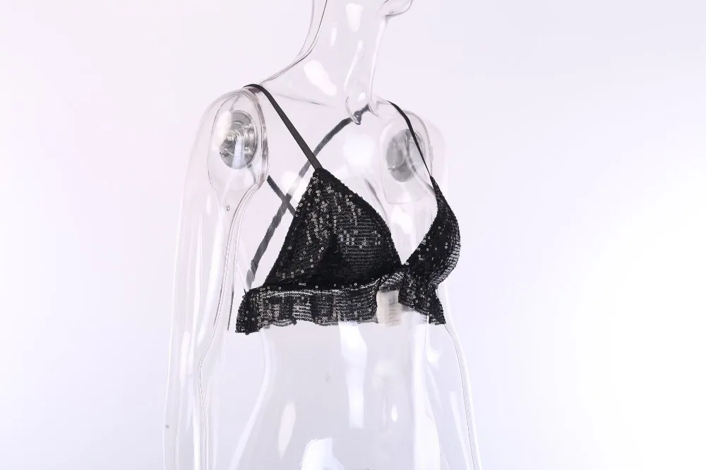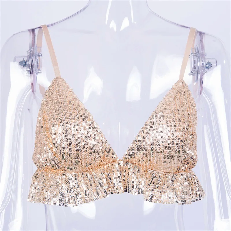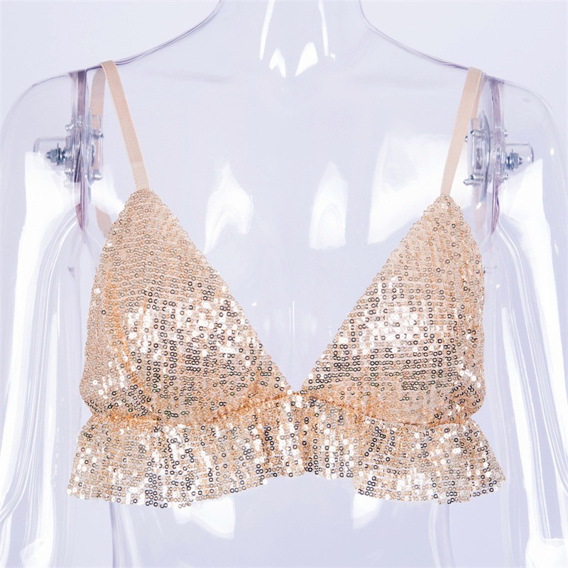 FREE SHIPPING Women Sequin V-neck Halter Sexy Ruffles Backless Crop Top JKP1840