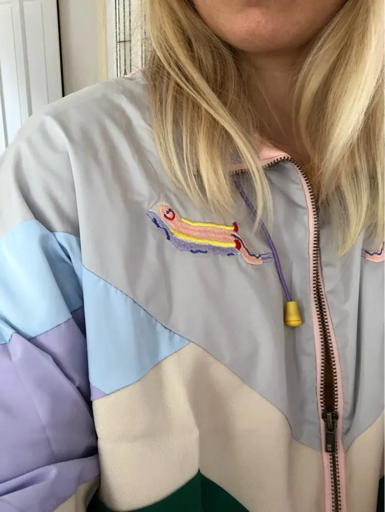 Очень милая ветровка. Смотрится классно. Цвета супер нежные. Это любовь. Качество тоже ок