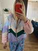 Harajuku Style Pastel Bomber Jacket Embroidery Color Block JKP4305