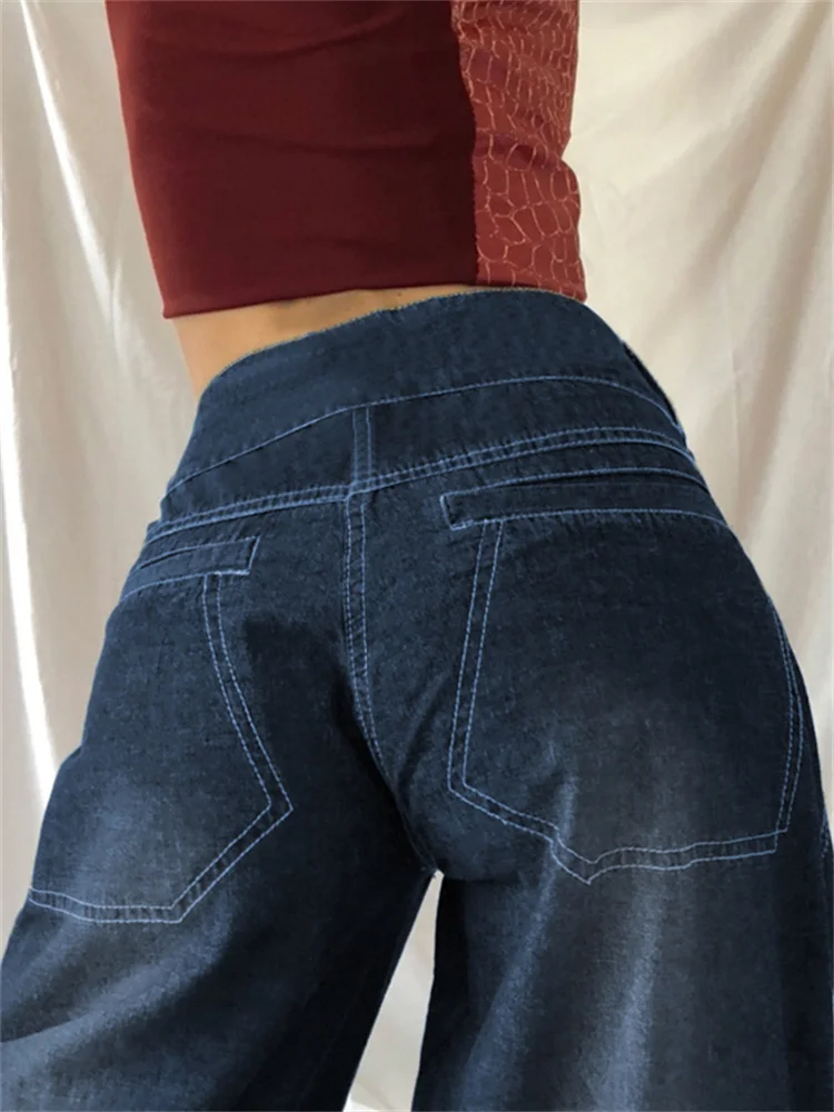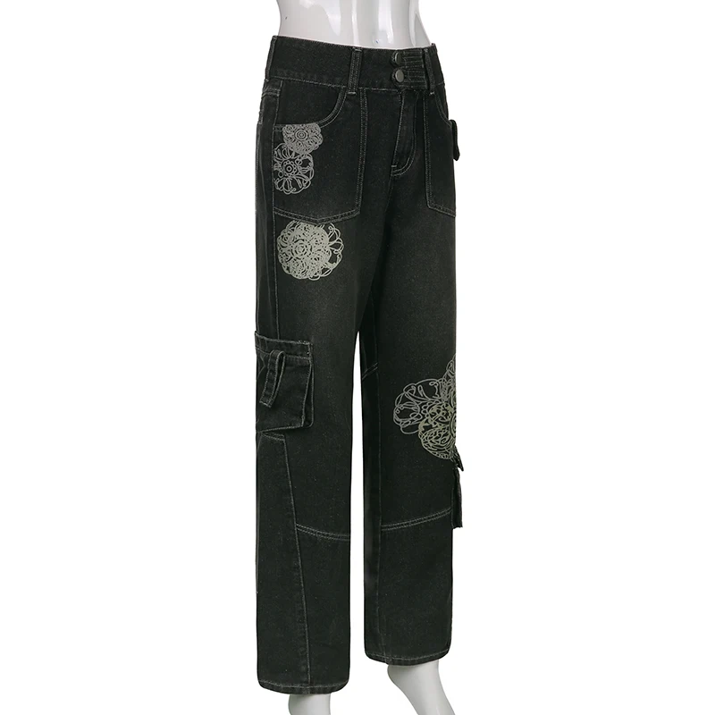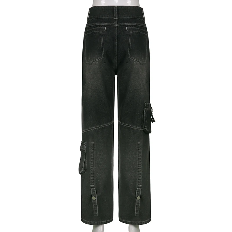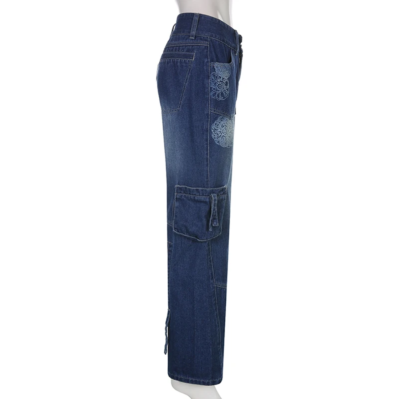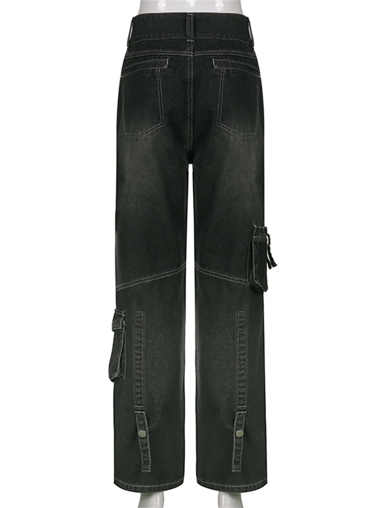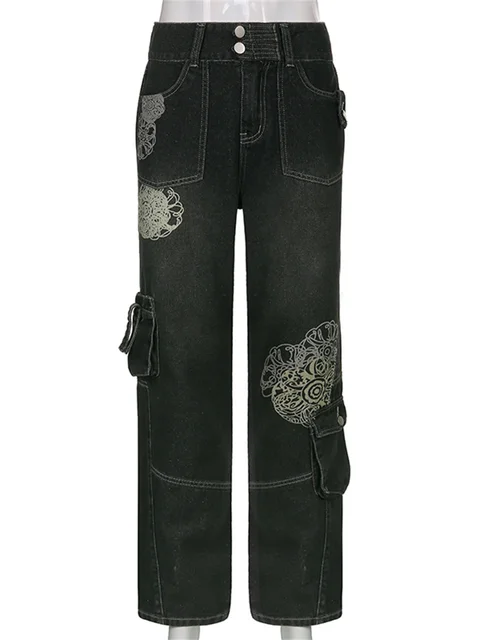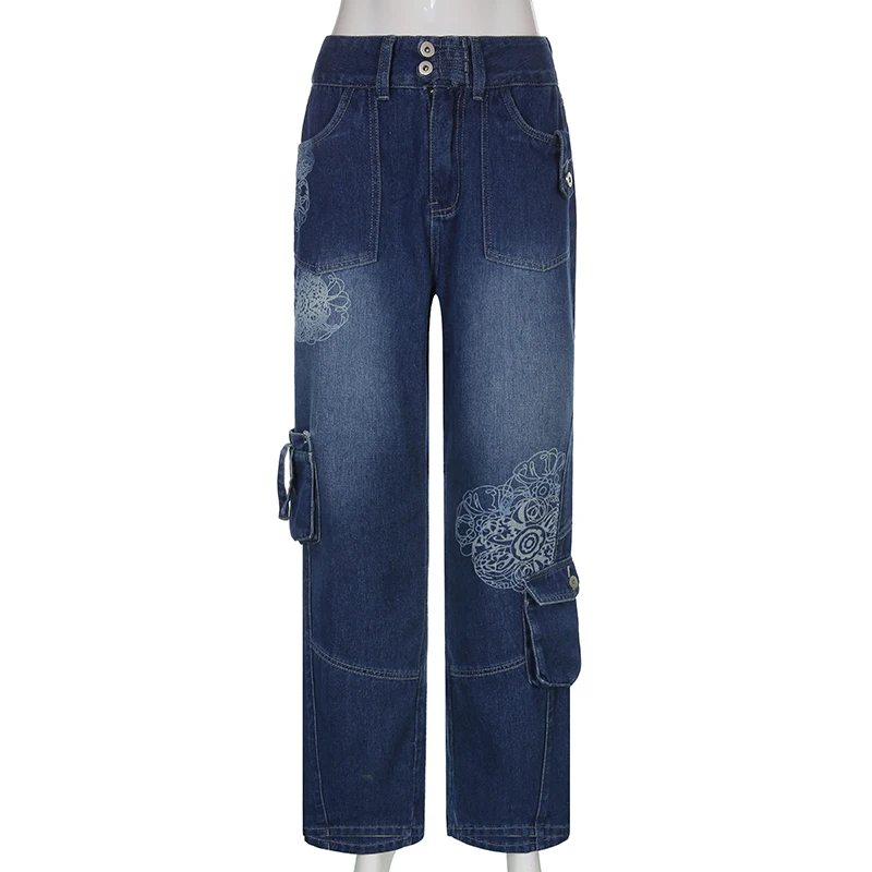 High Waist Cargo Denim Jeans Retro Grunge Fairycore Graphic Print JKP5986