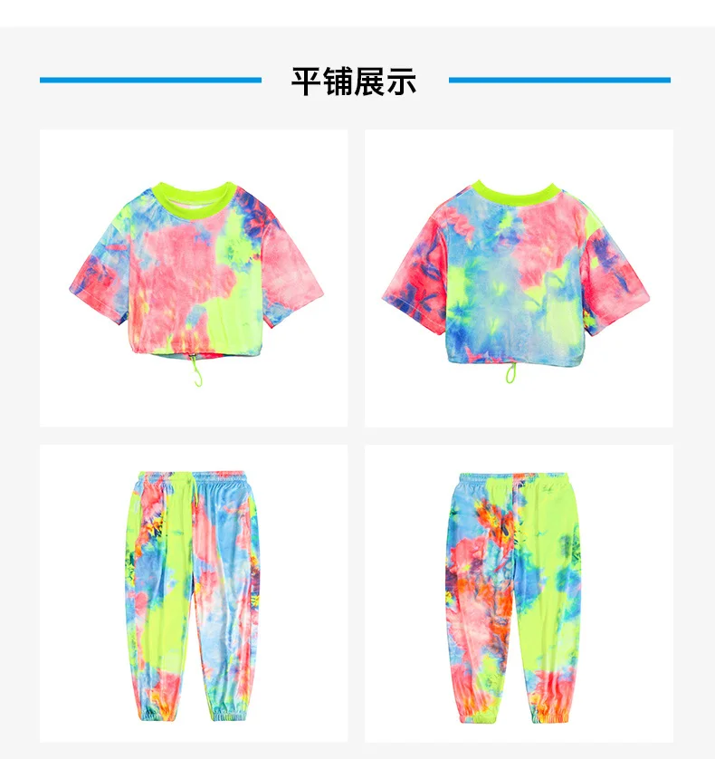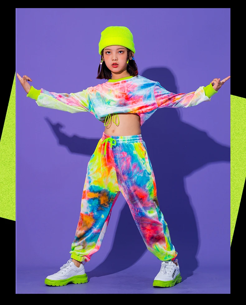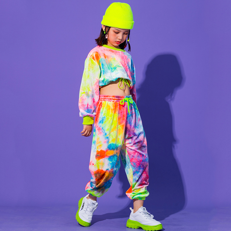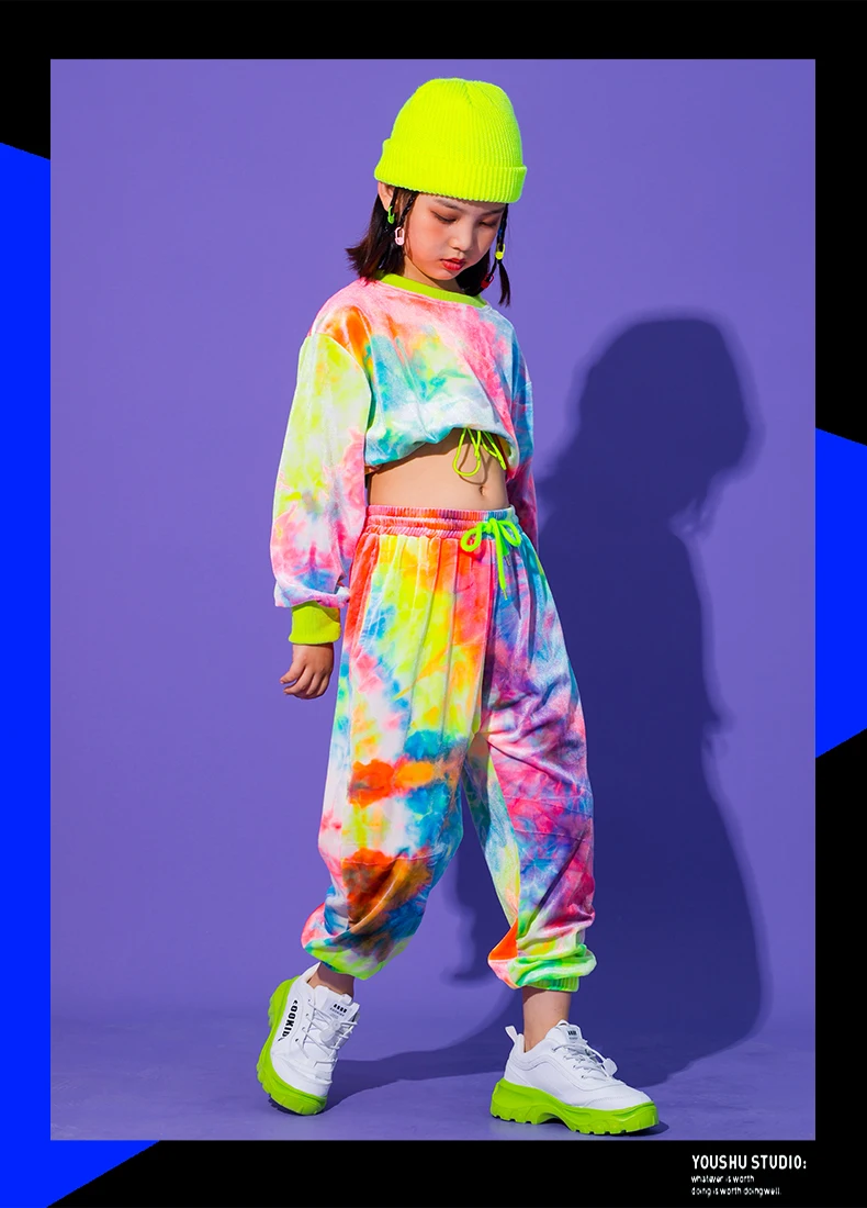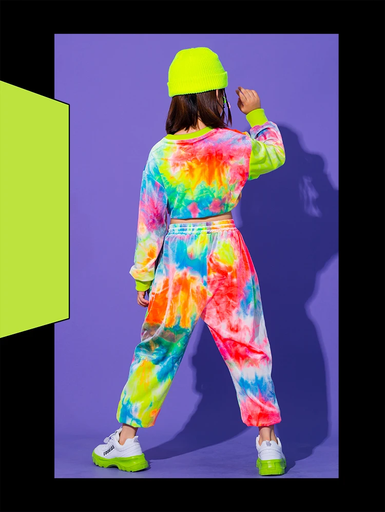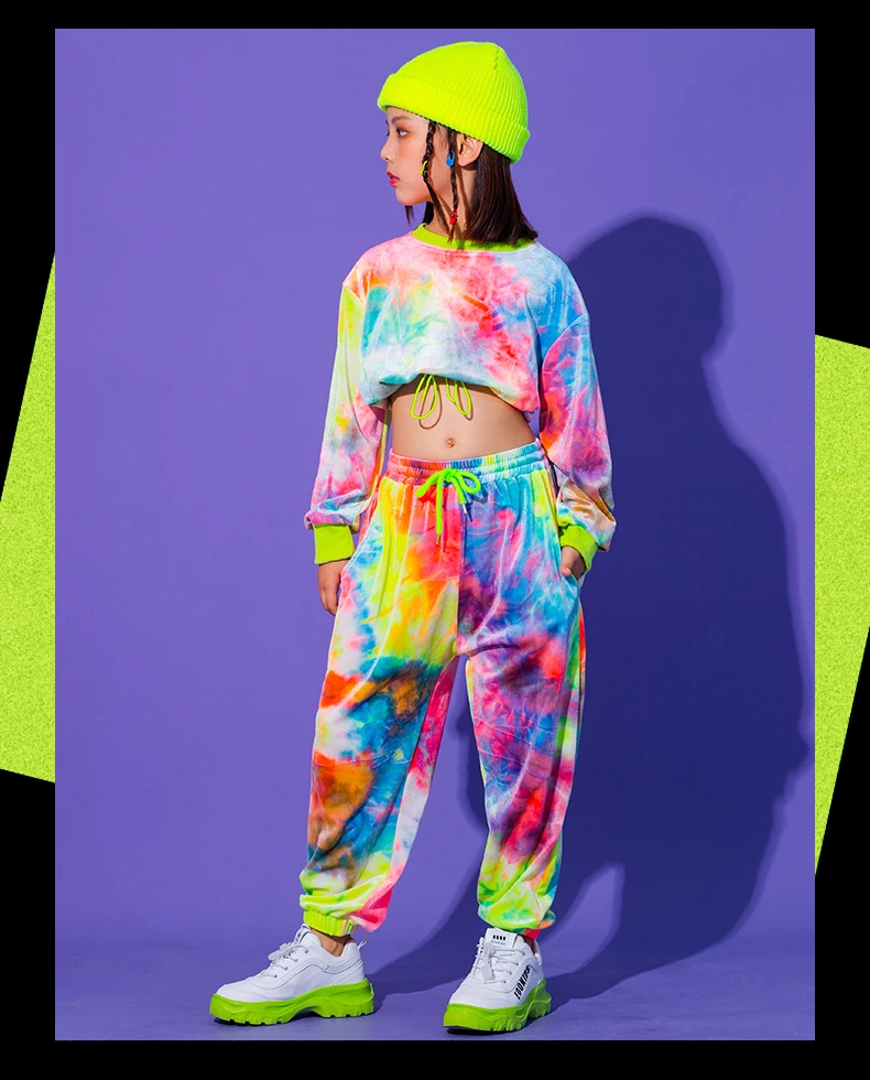 Hip Hop Clothing Tie Die Multicolor Sweatshirt And Pants Dancing Outfits JKP5926