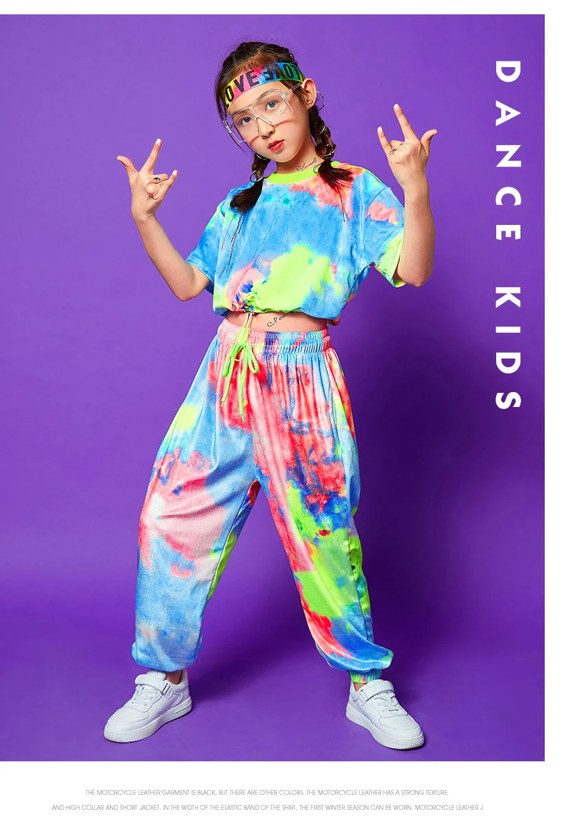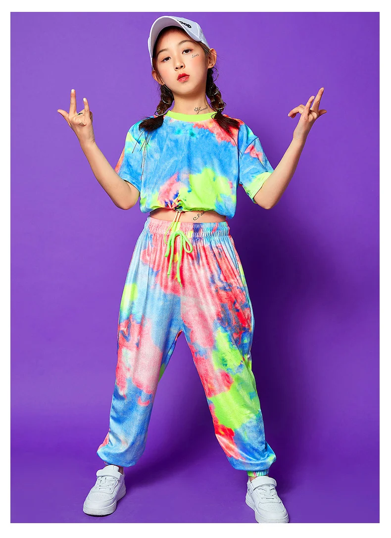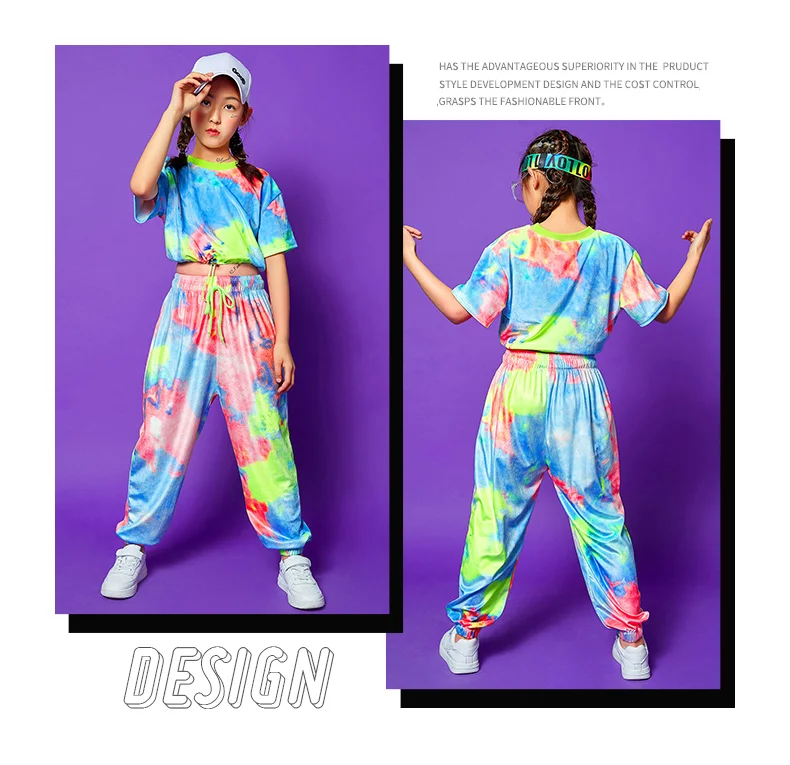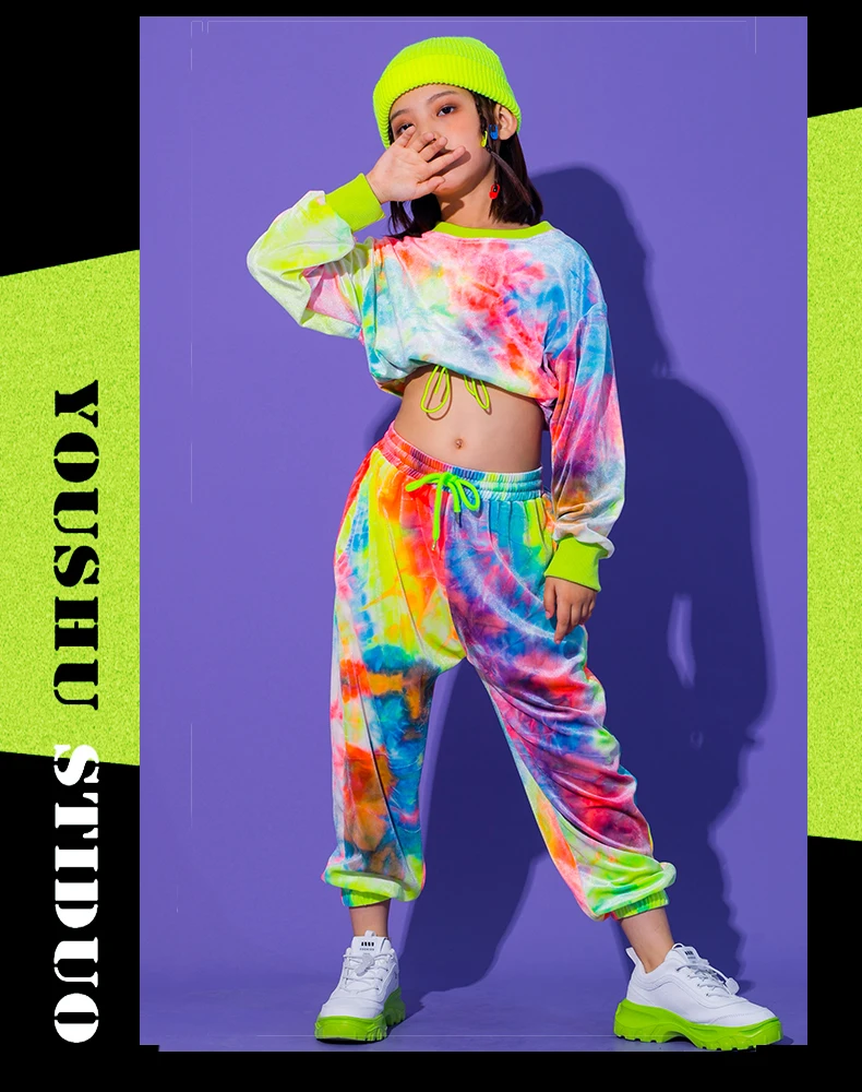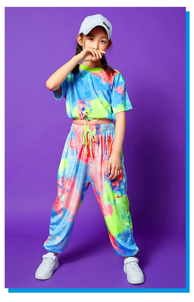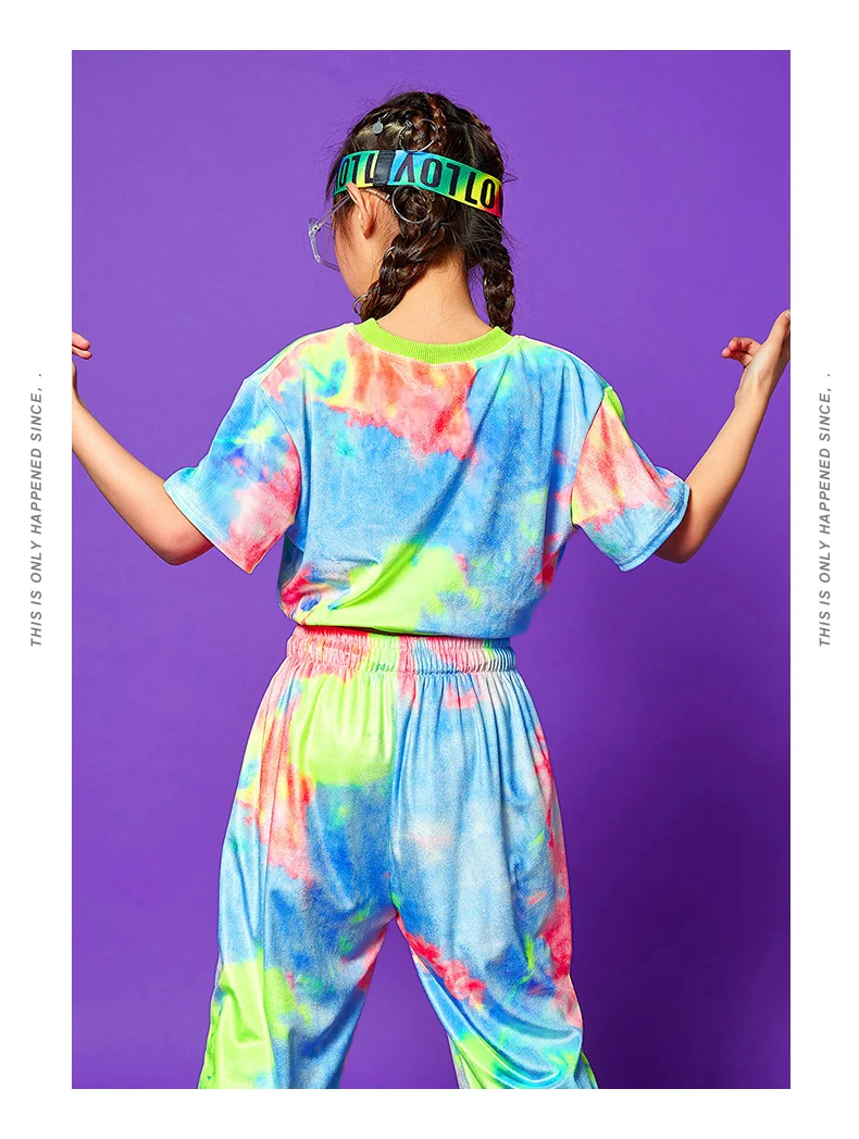 Hip Hop Clothing Tie Die Multicolor Sweatshirt And Pants Dancing Outfits JKP5926