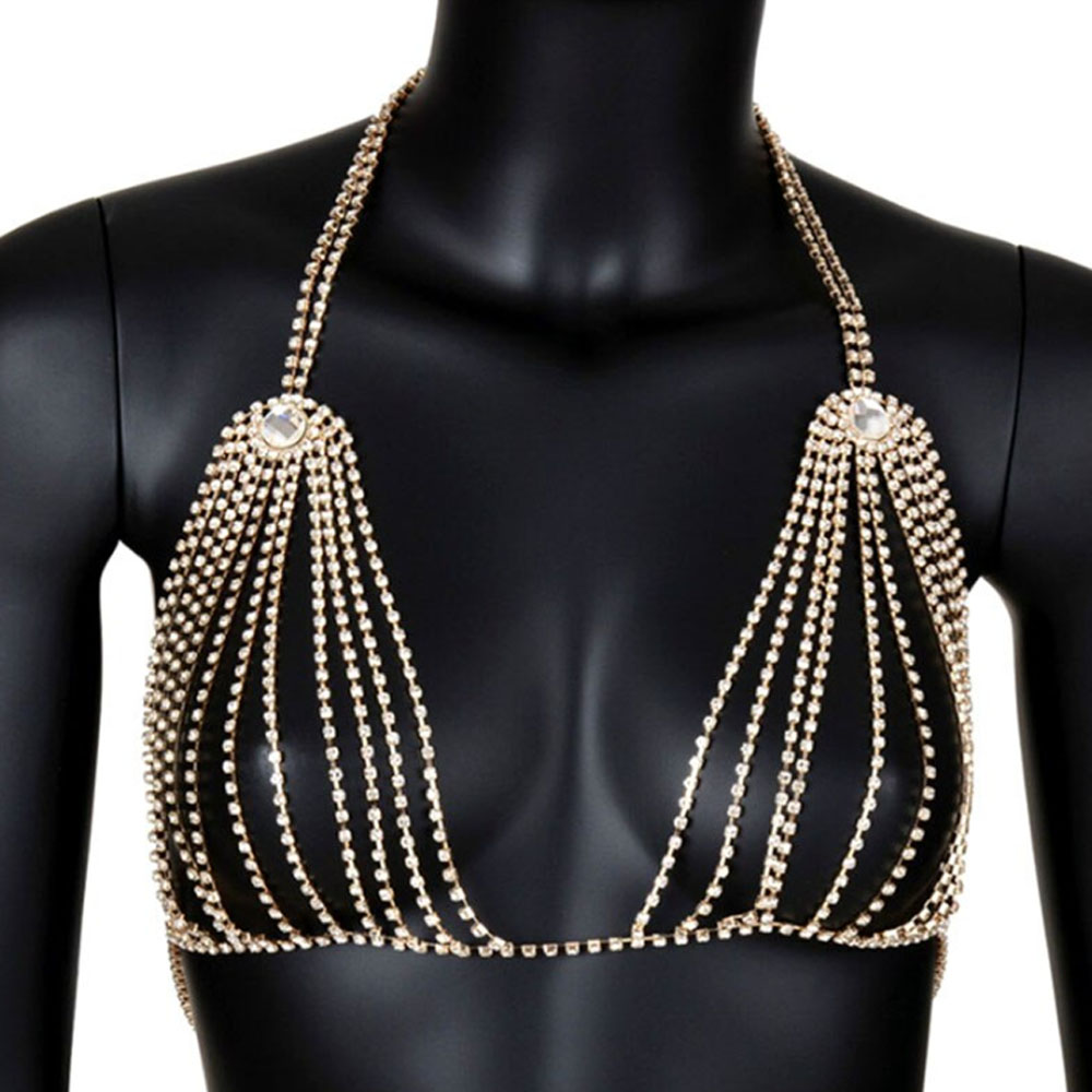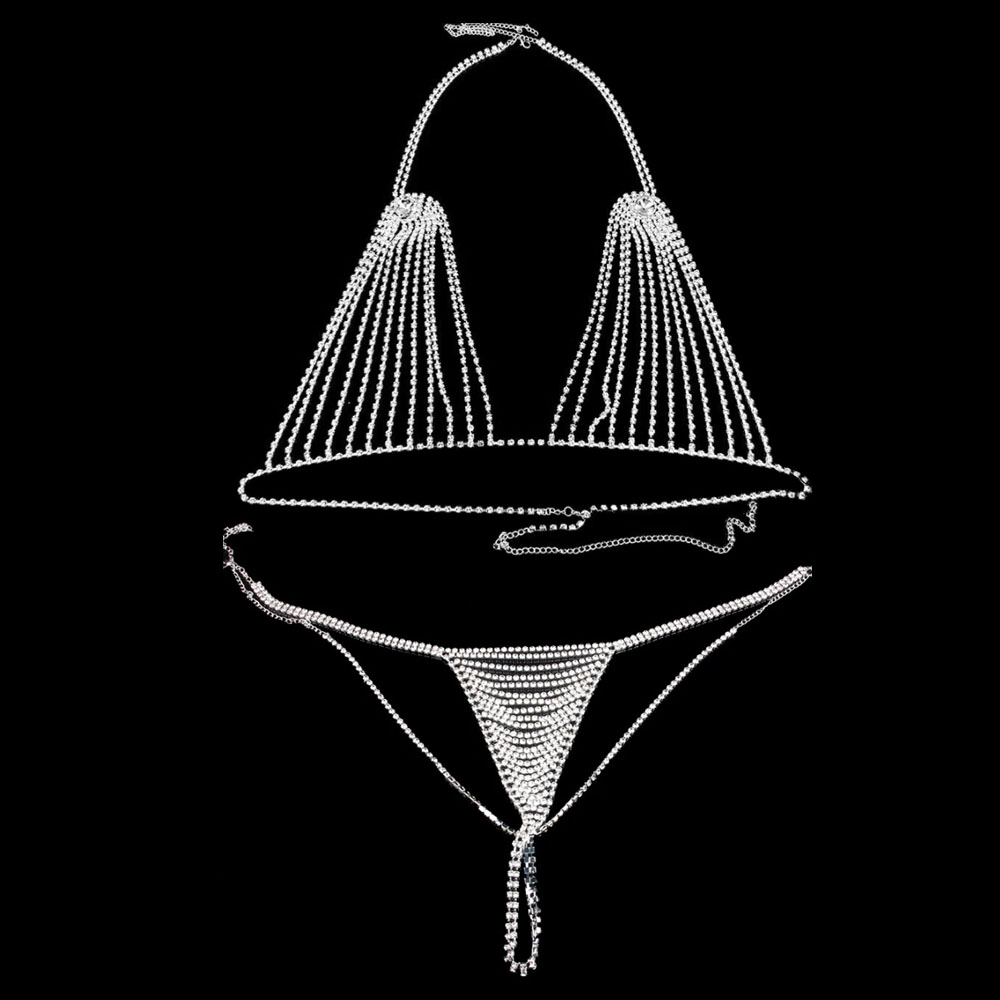 HOT Sexy Hollow Rhinestone Bra and Thong Panties for Women Charm Bikinis Crystal Body Chain Harness Underwear Jewelry Gift JKP3719