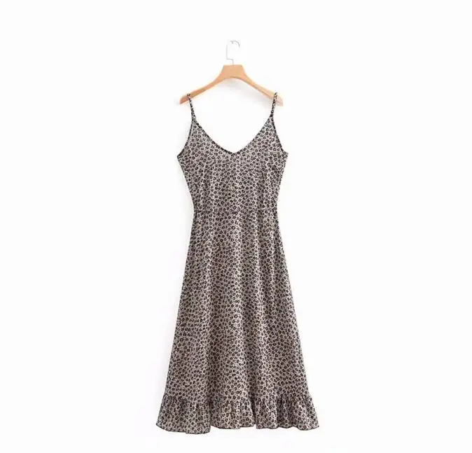FREE SHIPPING 2018 V-neck Leopard Ruffles Dress JKP1053
