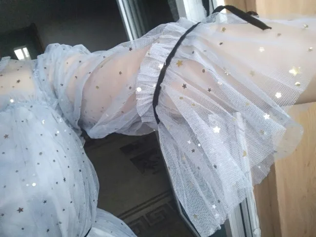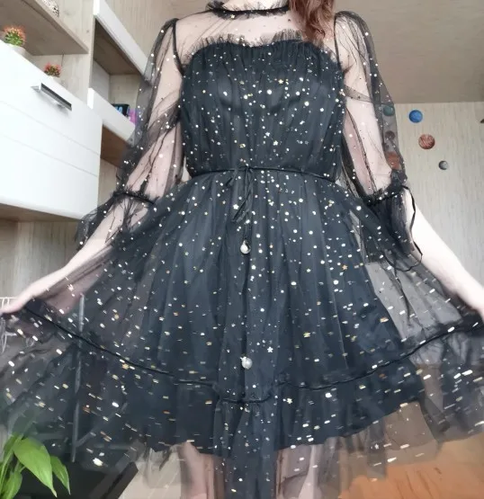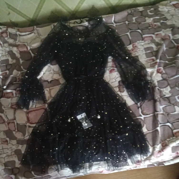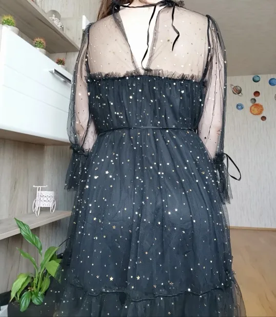 The dress came three weeks after the order. Quality for such a price is normal, most likely one time. The stars fall off.