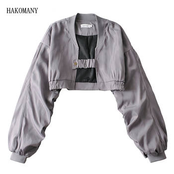 FREE SHIPPING Women Streetwear Ruched Sleeve Casual Basic Cropped Bomber Coat JKP7202