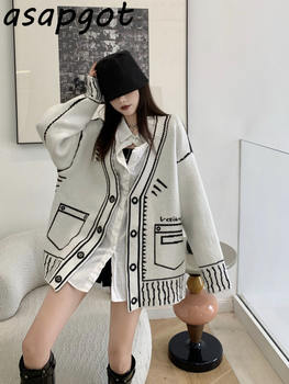 FREE SHIPPING Retro Temperament Loose V Neck Graffiti Cardigan Knitted Jacket JKP6098