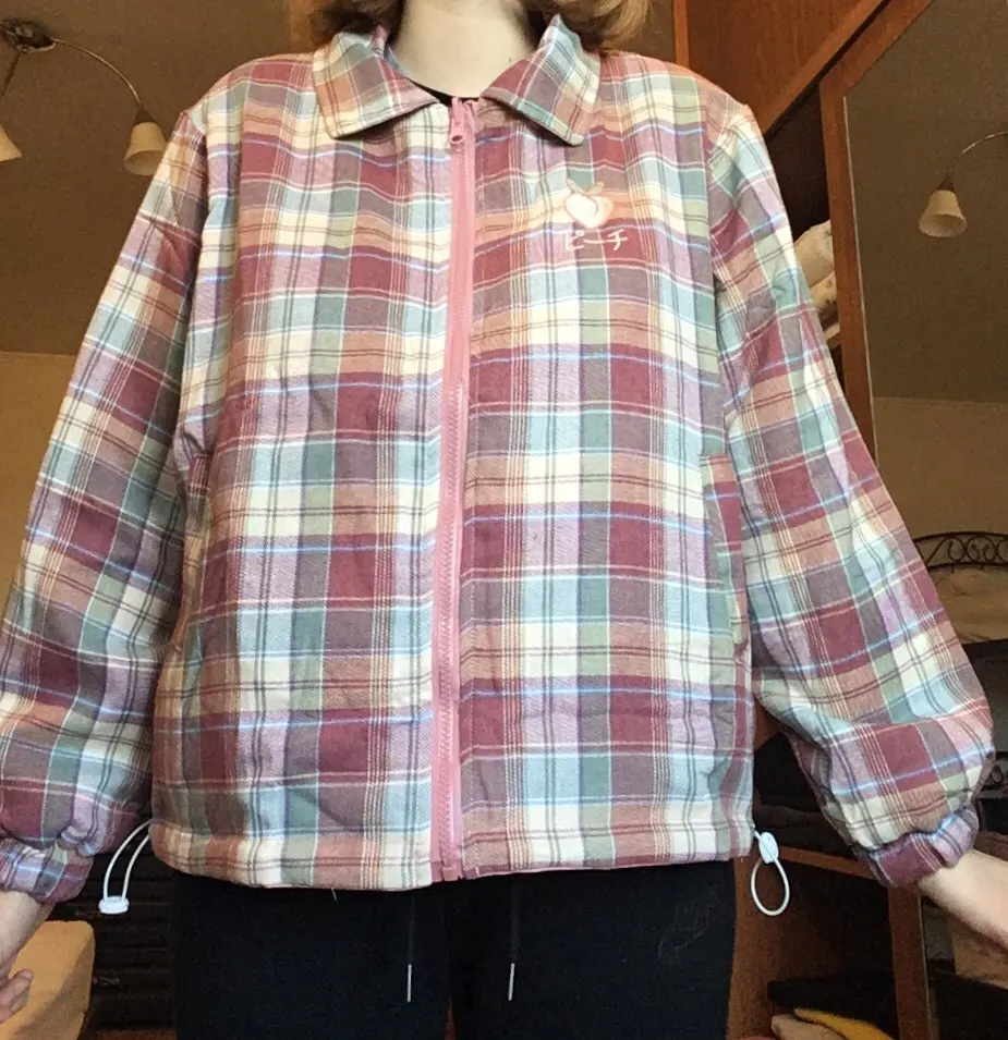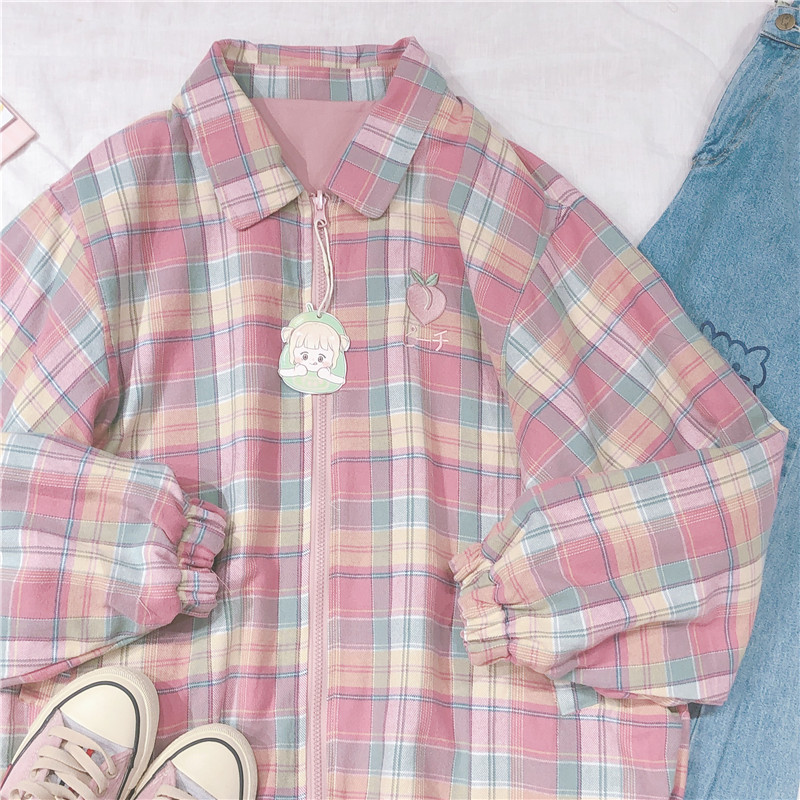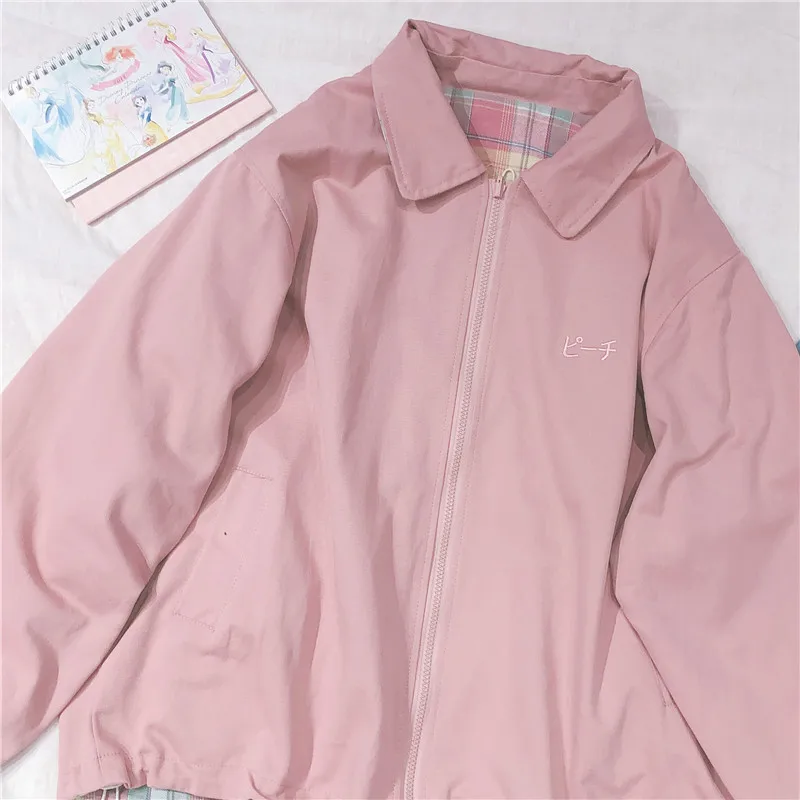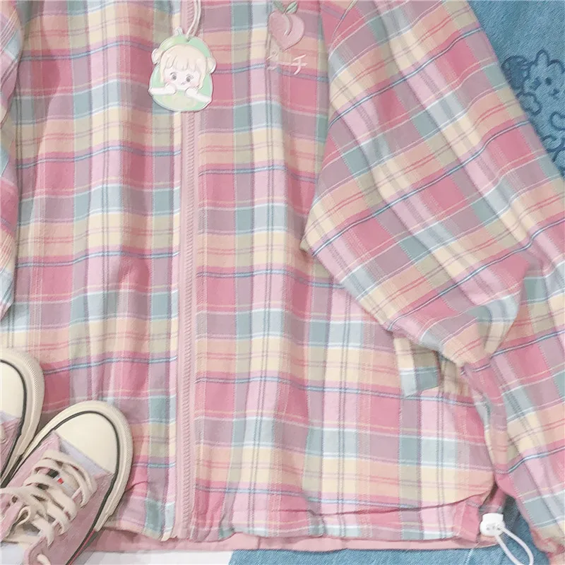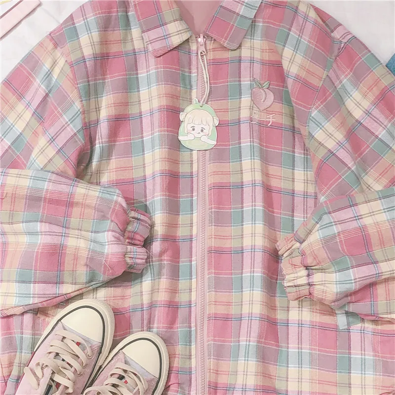 Japanese Plaid Coat Long Sleeve Oversized Rainbow Bomber Jacket 2020 Autumn Both Sides Wear Jackets Causal Clothes