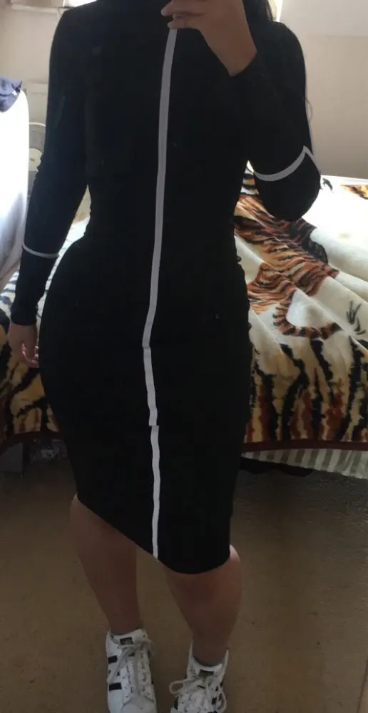 Beautiful just as described, true to fit but a little struggle to get on but i find that with all bodycon dresses..... Very nice looking to order it in Black