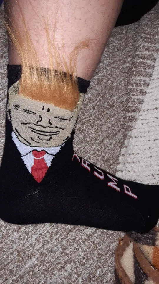 Salute! Super socks!!!! Convenient, beautiful, fun!!! Donald Trump!!!!! That's what democracy means!!!!! Super!!! Thank you!! Quality product. I recommend! Packing and delivery quality! Thank you and store and manufacturer! Josephine смеётся ......... Justine Trudeau... No such ........