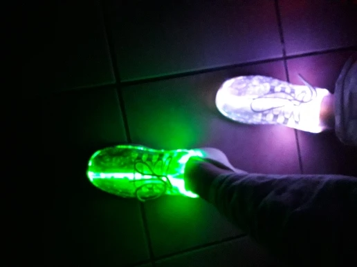 July 19-the order, august 13 sidec company could deliver them to me directly home, but eventually took it herself) nizhny novgorod. Quality-super, work. At 38-38,5 ross. size took 6,5 (inside on the tag written 41) and everything is good village! Button on/switch colors in the hood on the heel, complete with a cord for charging. The sole is dense. 7 colors, then include 4 twinkle modes and color changing. I recommend!