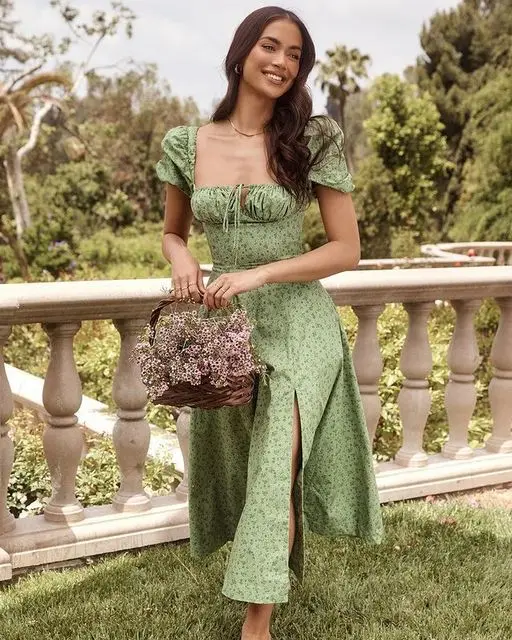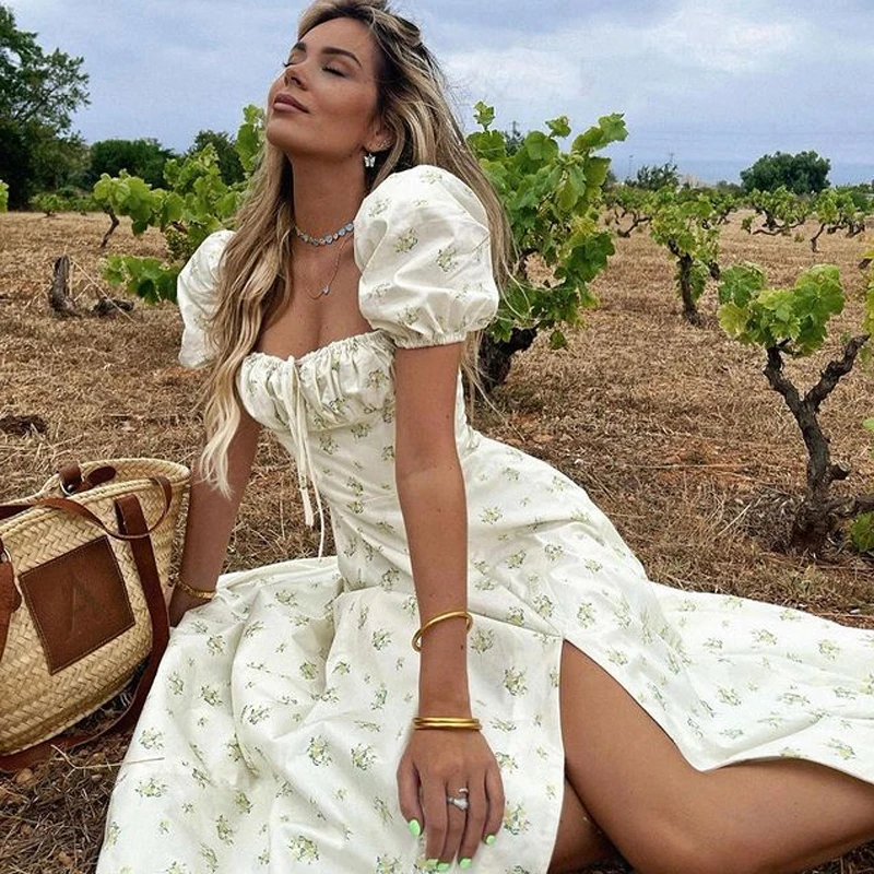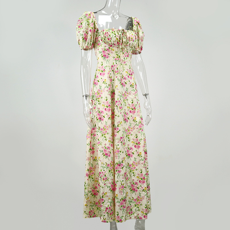 JUKPOP Women Elegant Maxi Dress Flower Print High Split Off Shoulder JKP5947