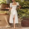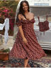 JUKPOP Women Elegant Maxi Dress Flower Print High Split Off Shoulder JKP5947