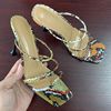 JUKPOP Women Sandals Slippers High Heels Flip Flops Snake Print Strappy