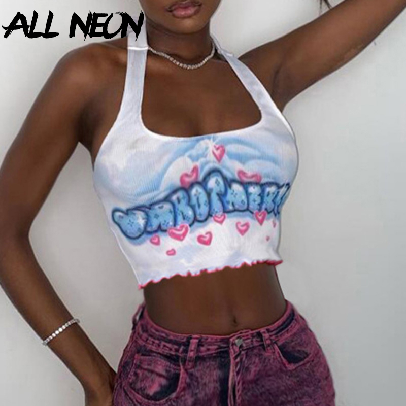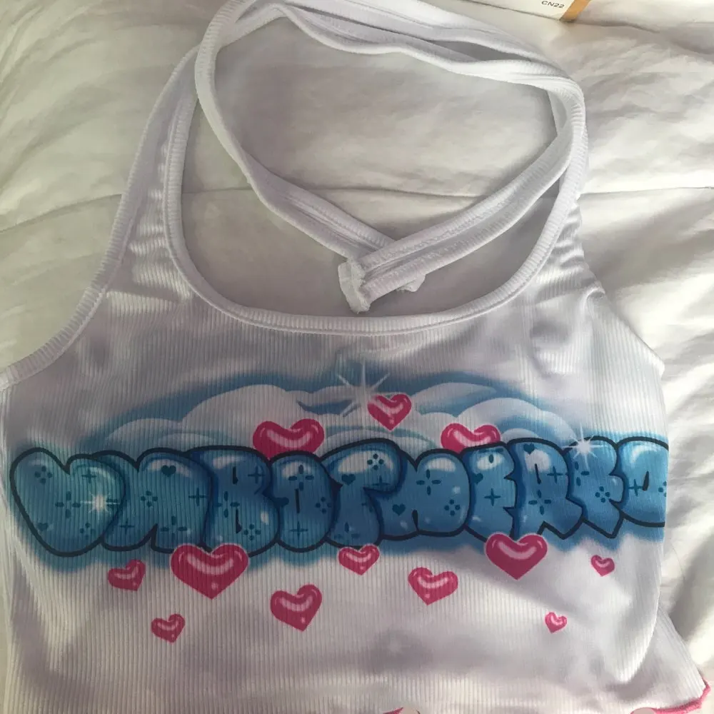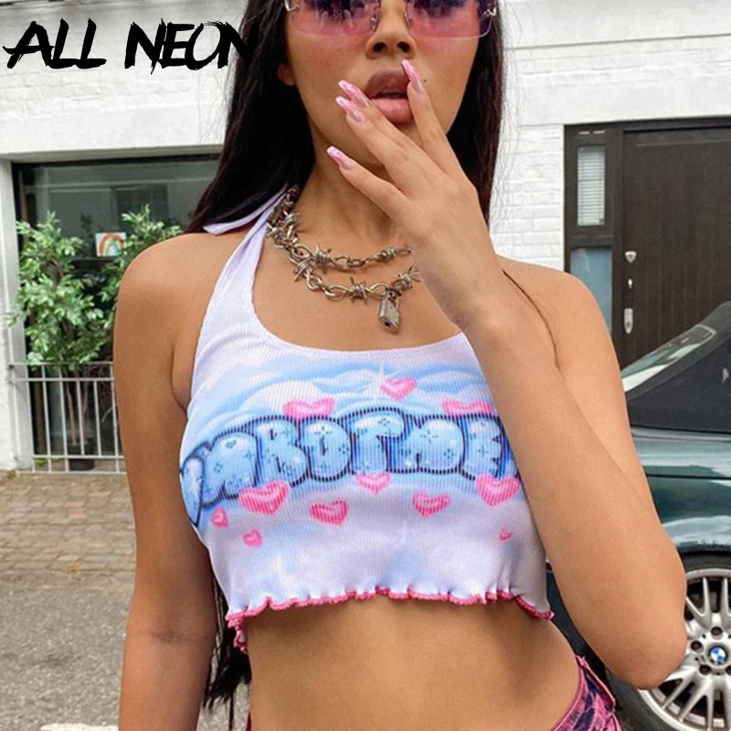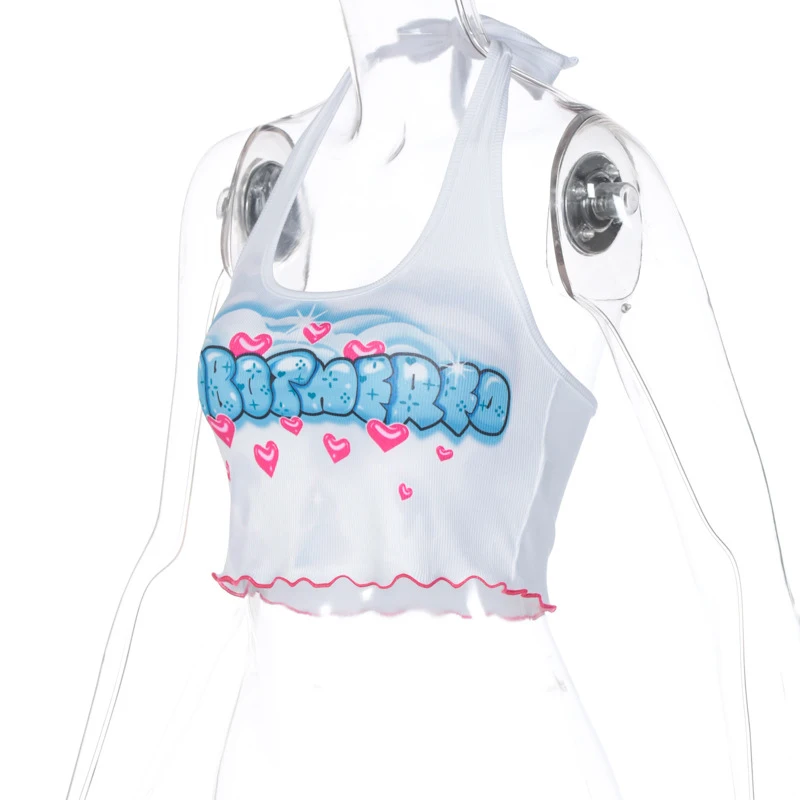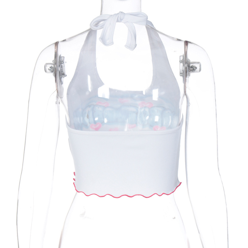 Kawaii Graphic Letter Printing Halter Crop Tops