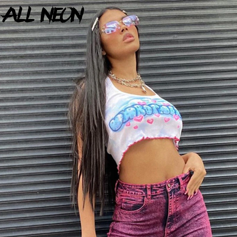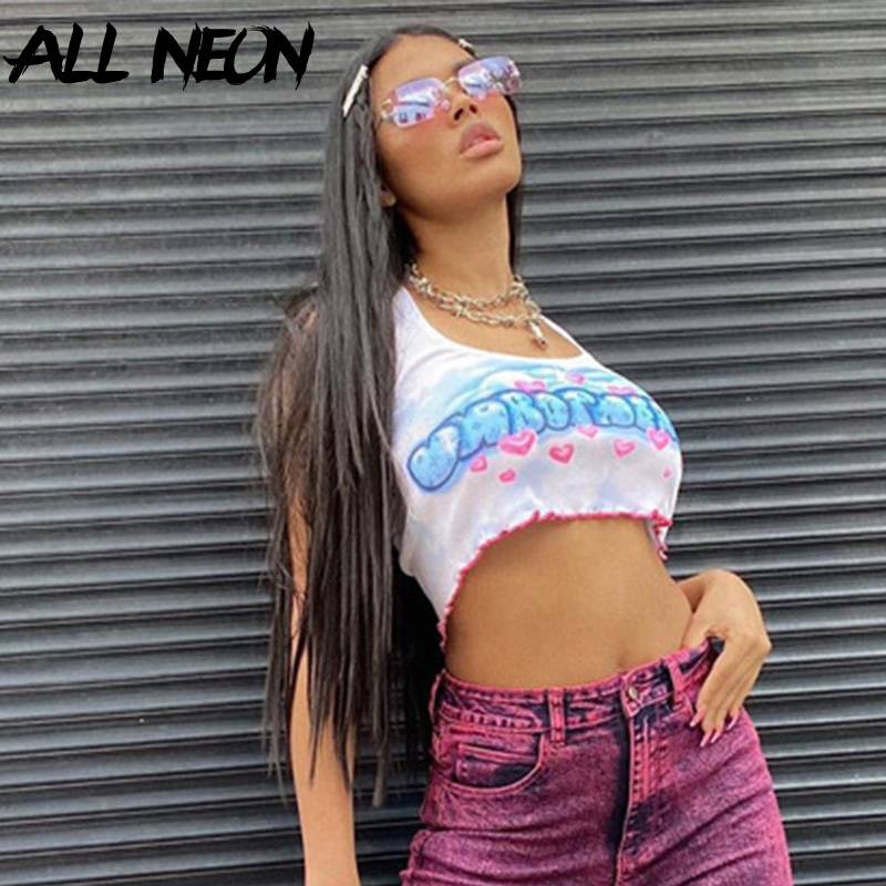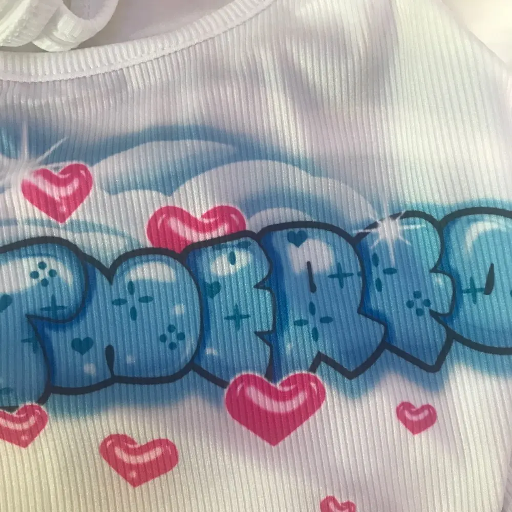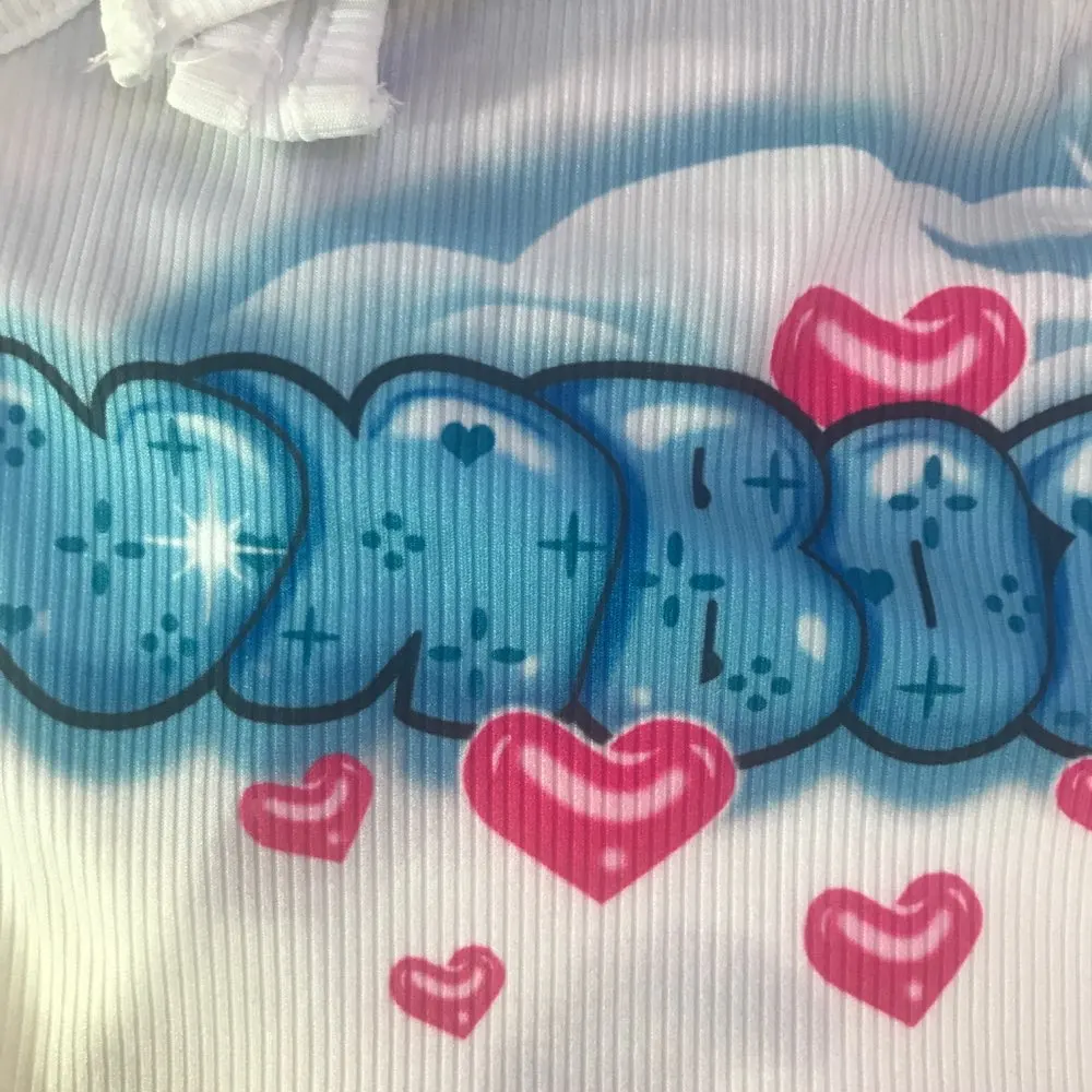 Kawaii Graphic Letter Printing Halter Crop Tops