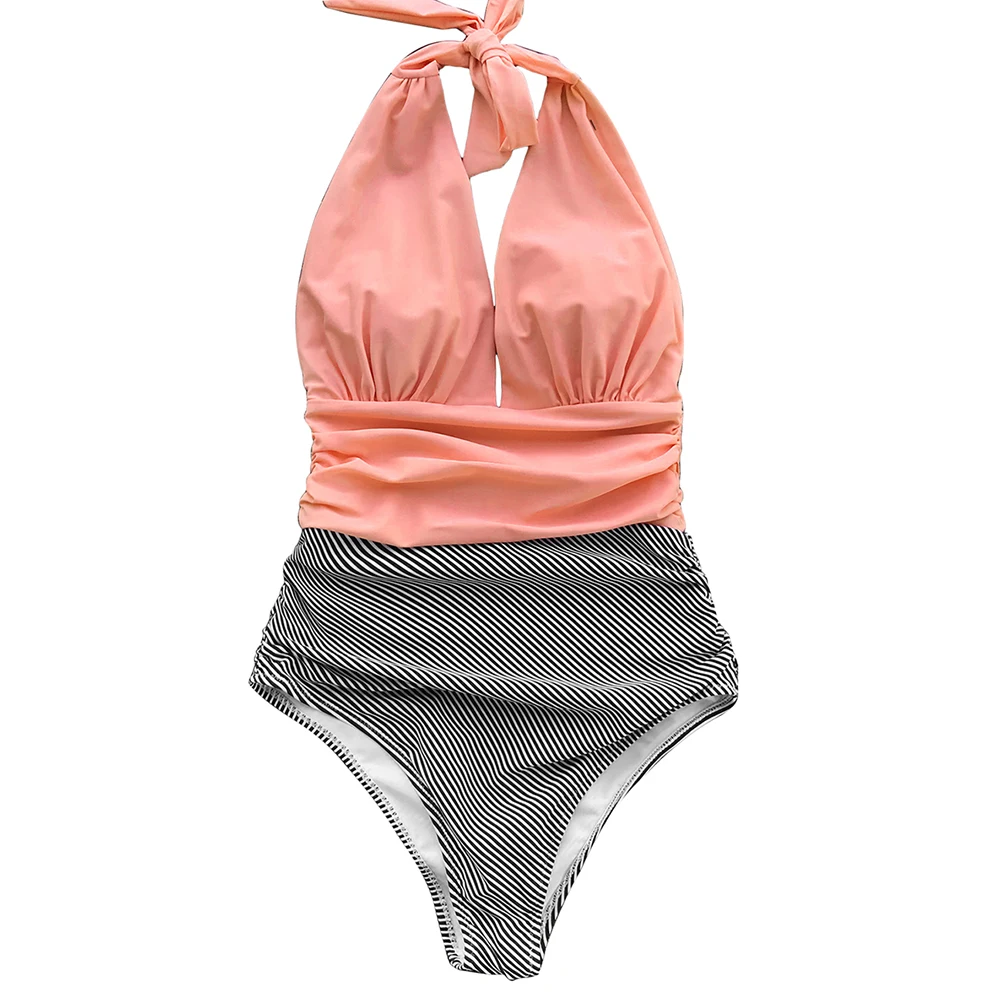 Keeping You Accompained Stripe One-piece Swimsuit V neck Backless Halter Bikini