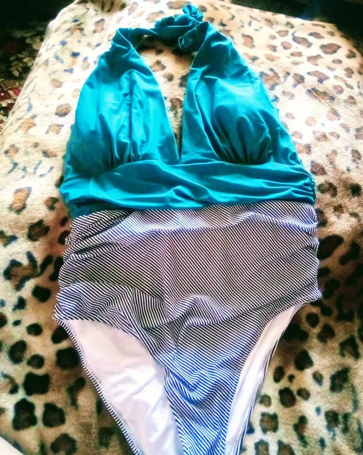 Before Novosibirsk goods arrived in 30 days. Tracked in the way, delivered safely. In the package a closing handbag with a swimsuit, all the doubles on the product are in place. The stated description corresponds. The quality is good, the seams are reliable, the color is bright as in the photo. Ordered dark turquoise-pleased. Very beautiful swimsuit. Seller recommend. The only thing-despite the large size, the full figure will roll on the back, as it does not fix anything and for the large size of the chest the paracorn cups inside the top are very small, but that's correct. In general, everything is fine