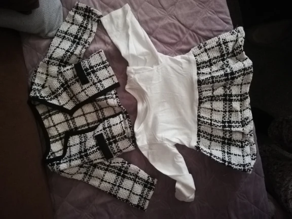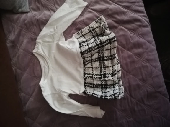 The goods are accurate, only the platice is short, the daughters are 3,5 and took five, he just... So everything is super, for such money I recommend. Fabric cotton and knitting, very satisfied, it is possible for lasins or tight pantyhose. Thank you.