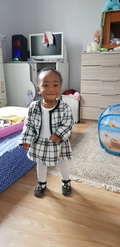 Light jacket and tunic material flannel pleasant to the child's body, the purchase is satisfied with the truth we are a little too big (sleeves) size approximately 3 years, I recommend.