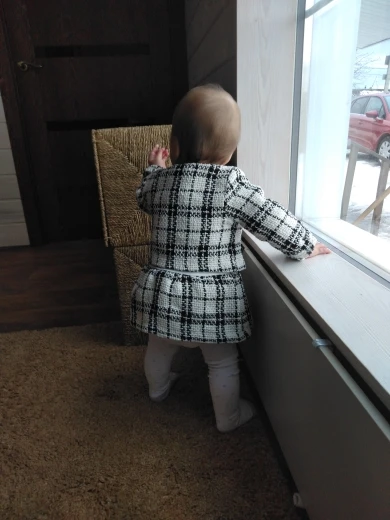 Delivery month. I liked the quality, a couple of threads stick out, but you can cut it. According to the reviews I decided to order the largest size (for me it is better to turn my sleeves up than with an open ass). The child was taken for the spring and did not lose at all. Now it is too big, but you can dress if the sleeves turn, and the length of the dress is good. It seems to me even for the next very enough, and the jacket can be worn separately with jeans. Super, I liked it. Growth now 74, the size of clothes wear 80-86, physique average