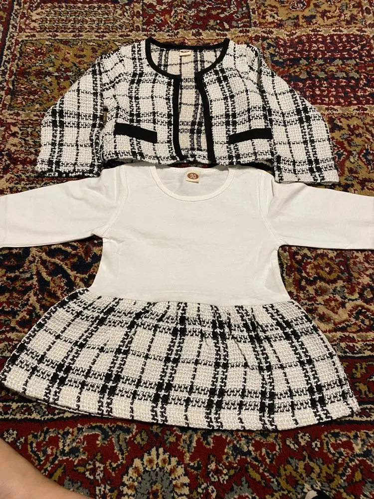 Kids Baby Girl Plaid Coat Toddler Outfits Set JKP4467
