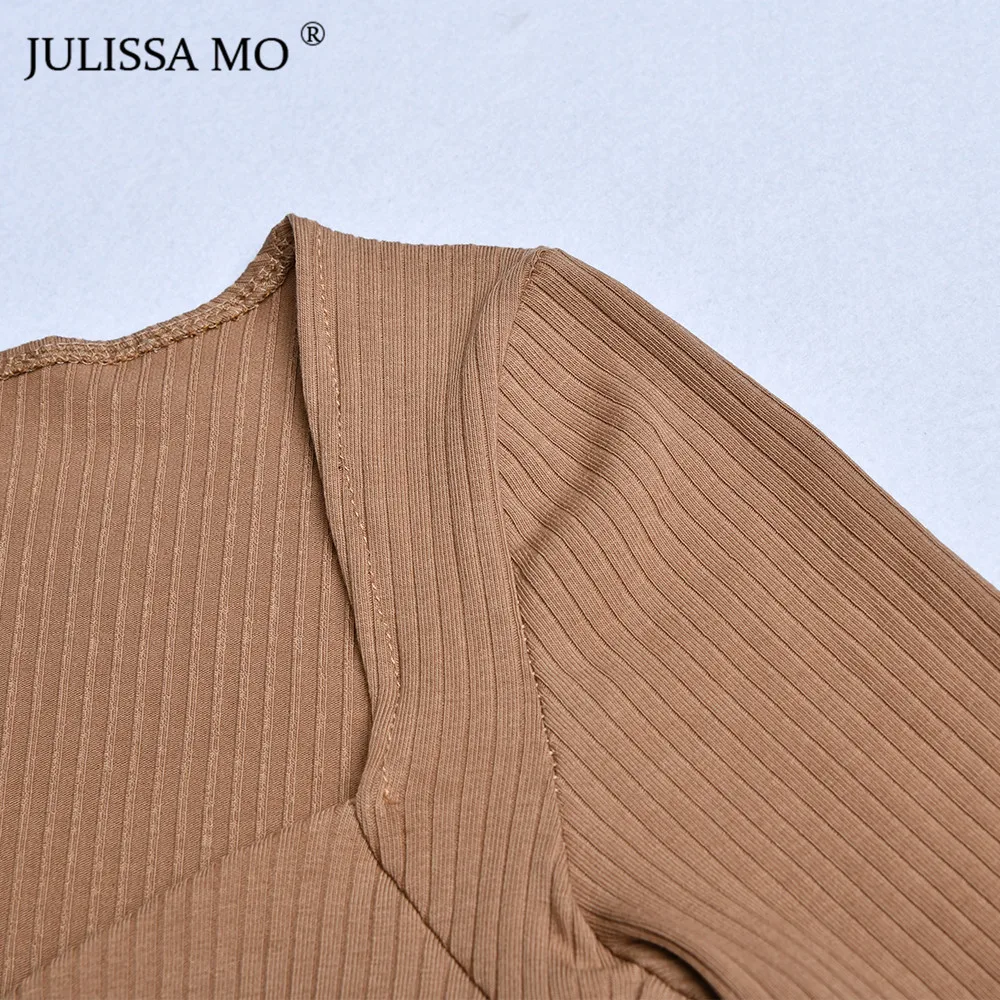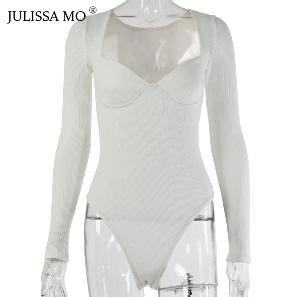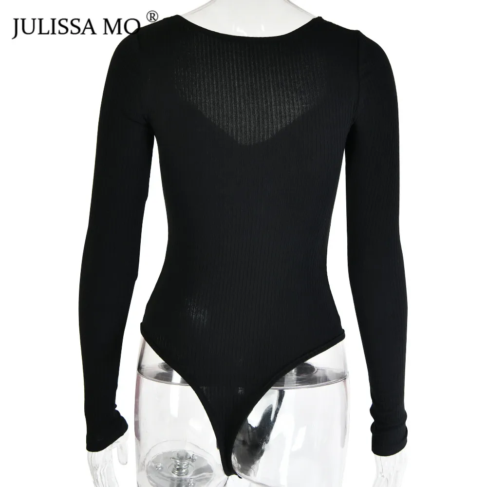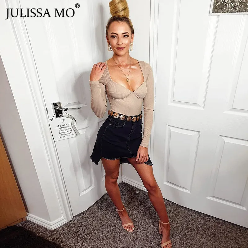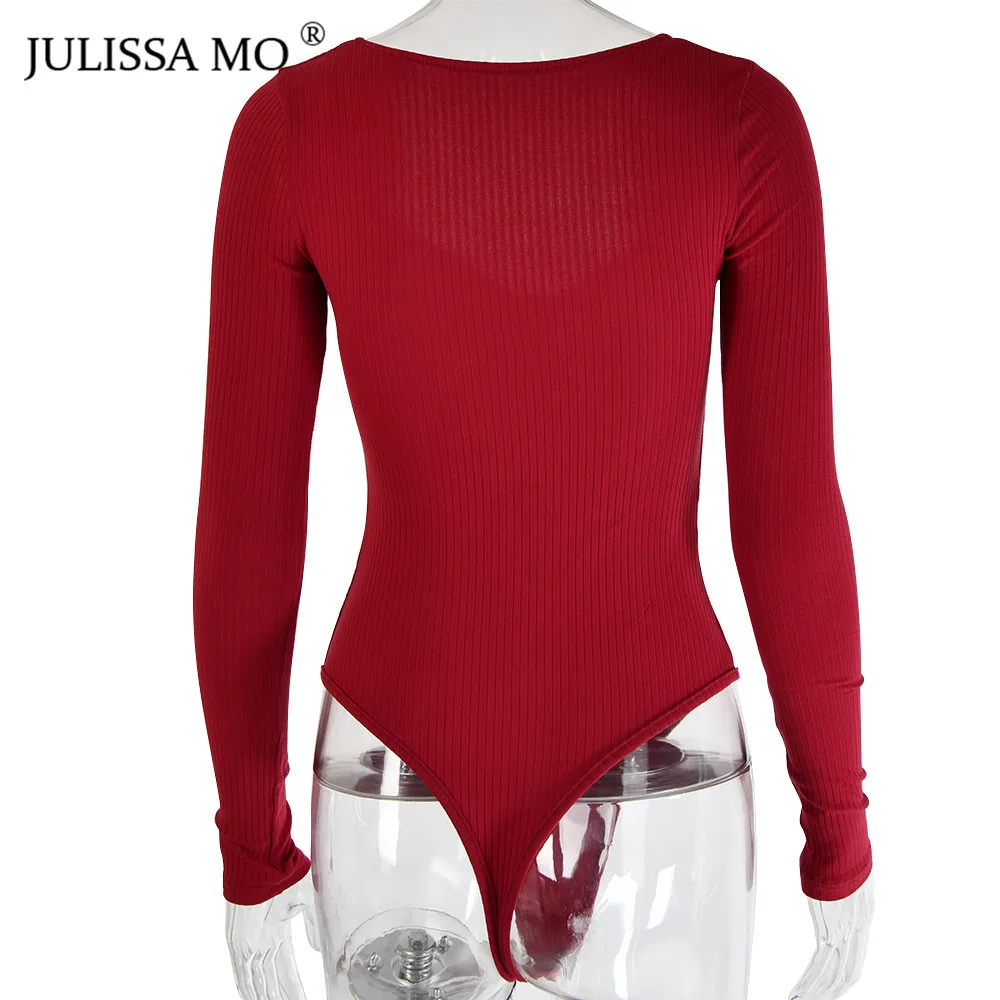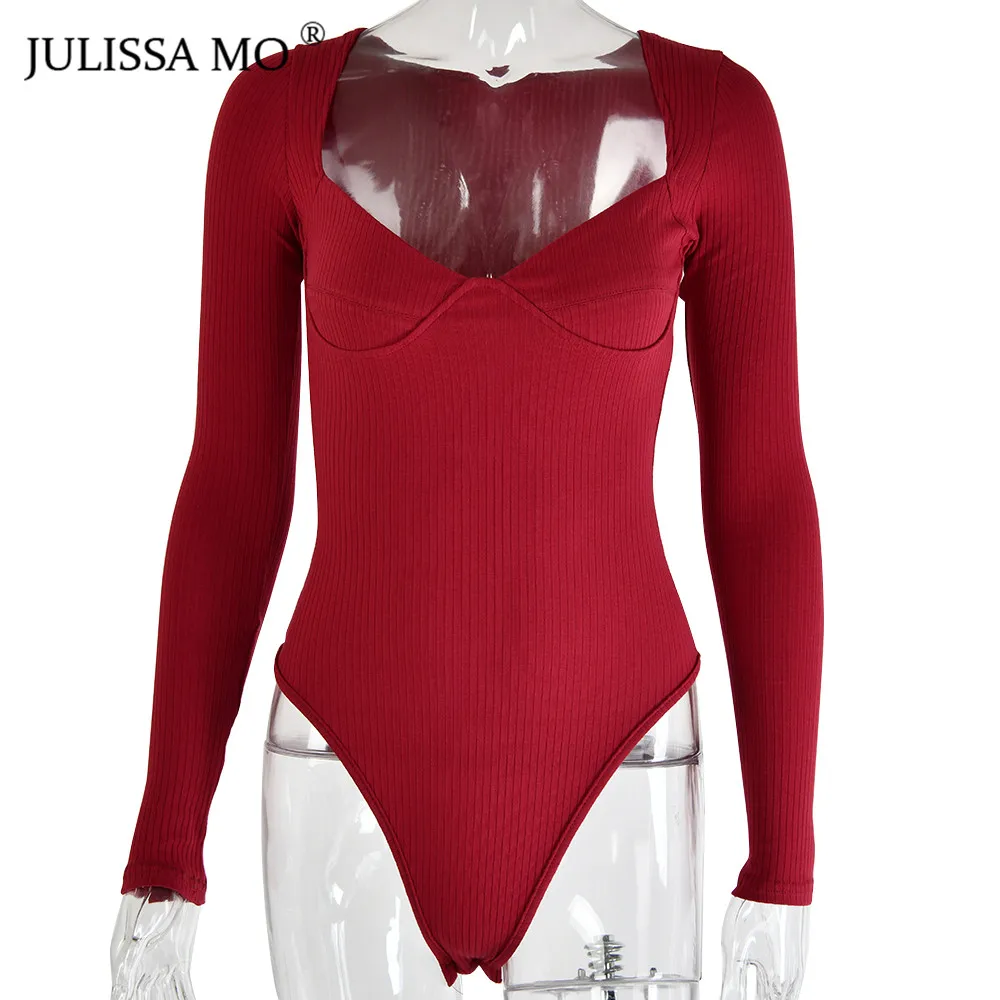 Knitted Long Sleeve Bodysuit Women Tops V Neck Slim Rompers