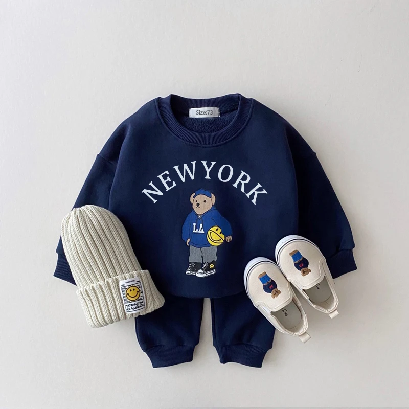 FREE SHIPPING Baby Boys Clothes Sets Bear Letter Casual Hoodie And Pants JKP6087