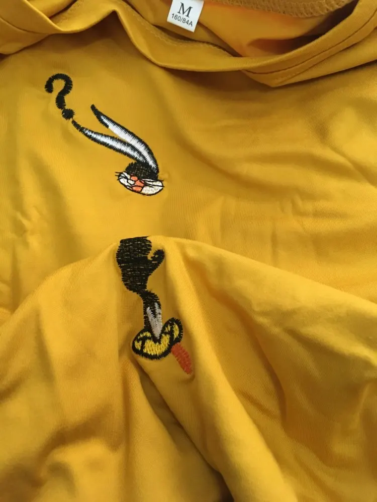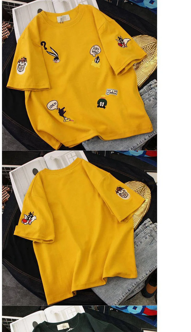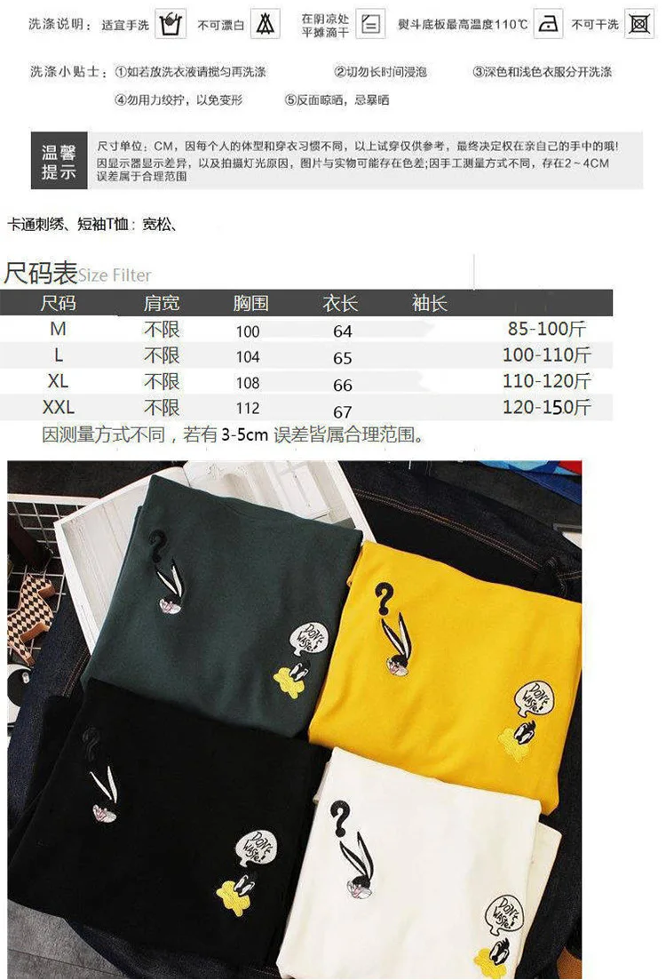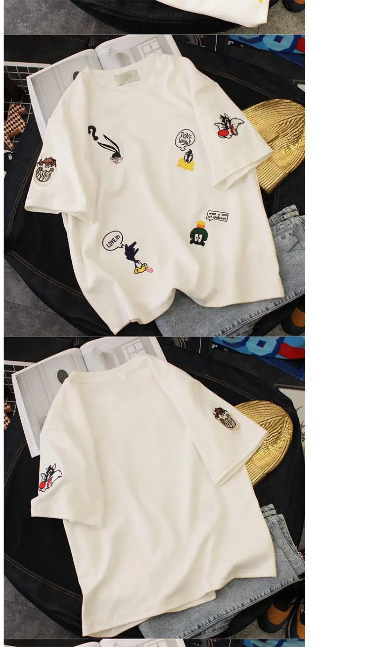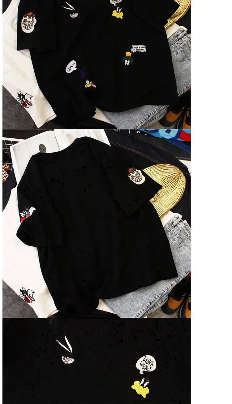 Korean Casual T Shirt Bugs Bunny Letter Embroidered