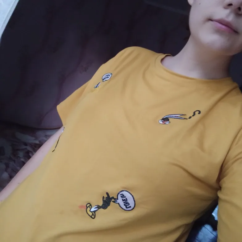 Думала будет чуть длиннее, но ничего, мне очень нравится) ткань приятна , немного торчат нитки , но это ничего. Я брала xl ,мой рост 183 см . Смотрится хорошо