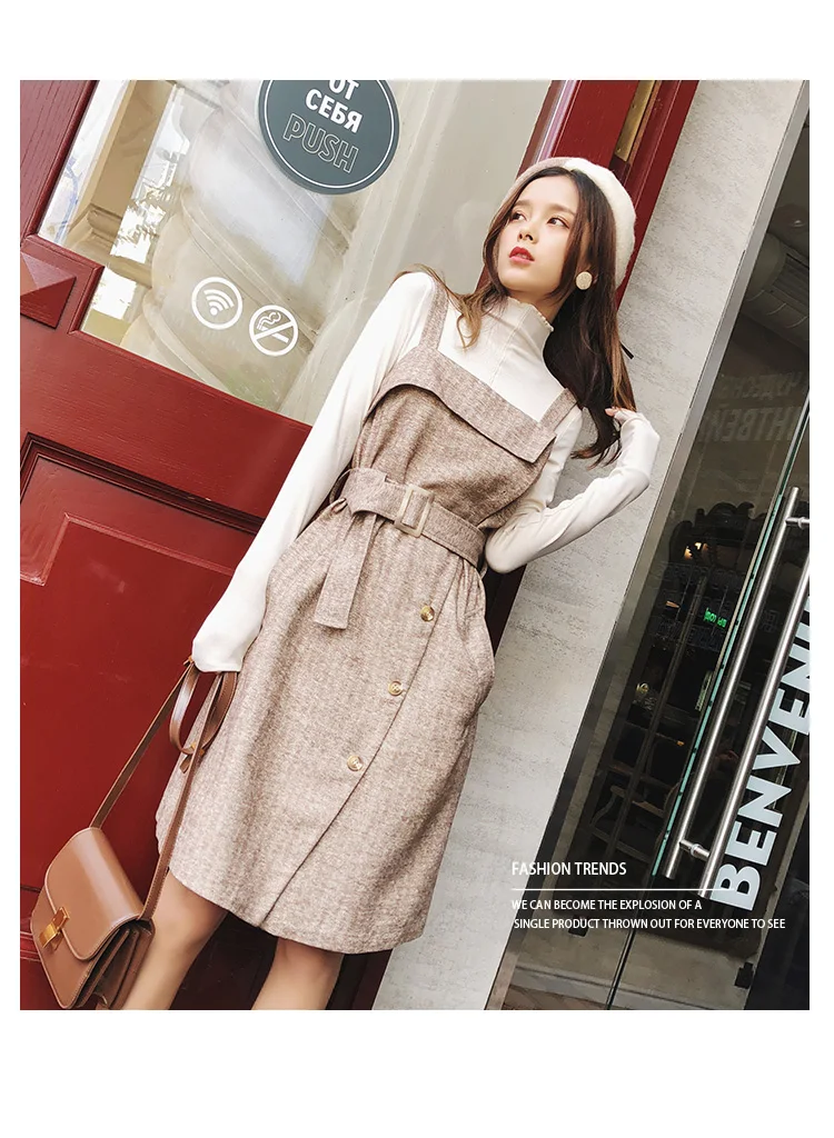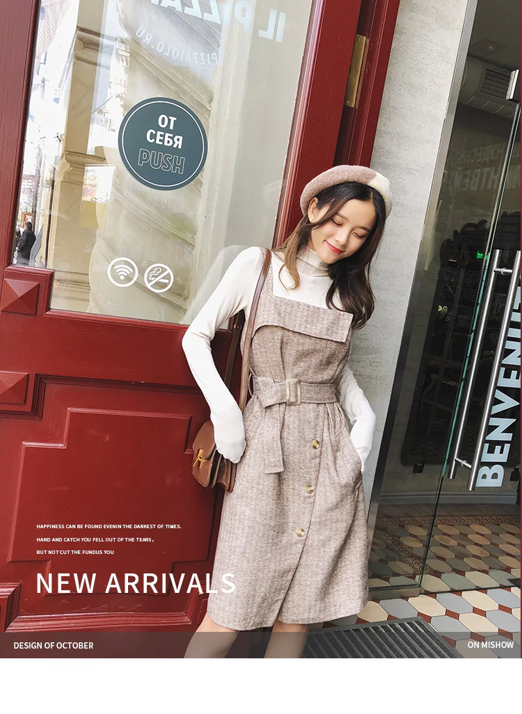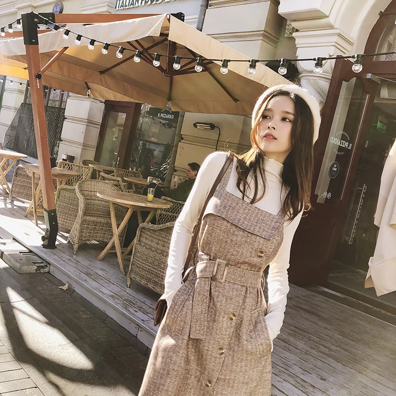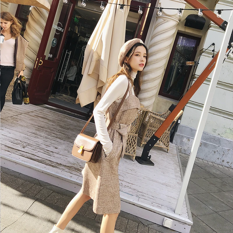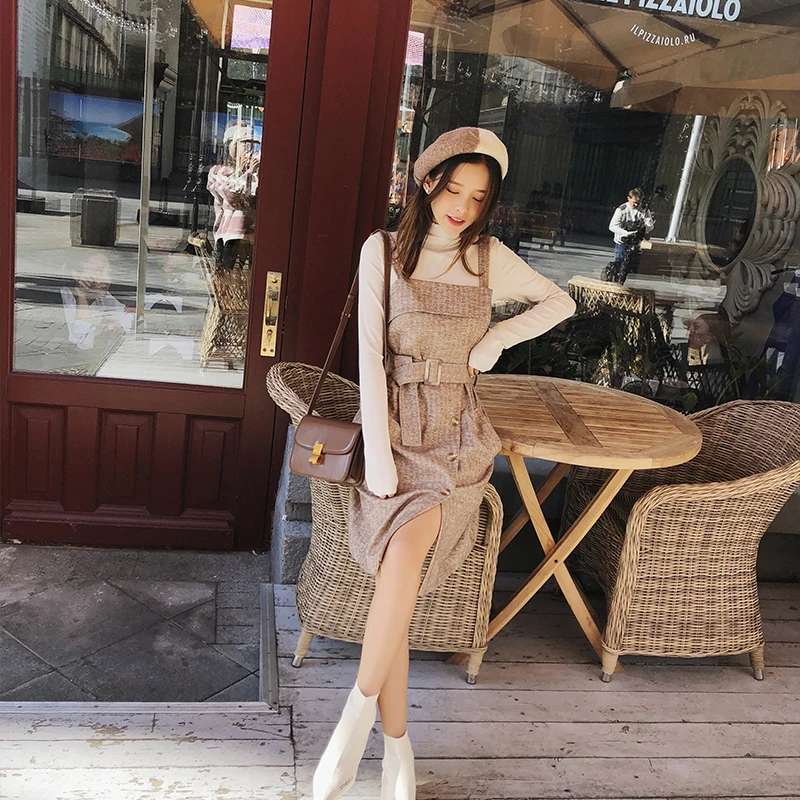 FREE SHIPPING Korean Fashion Outfit Camisole Dress With Belt