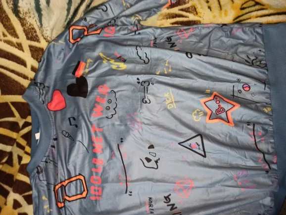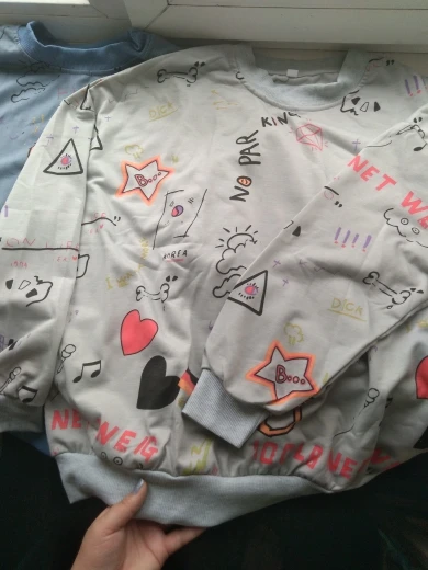 Happy with the purchase. I expected a little different material, but this one is pleasant to the body. After opening the package, the smell on the jacket is quite strong, but after washing everything is immediately washed out. All prints did not fit, they keep well. Recommend.