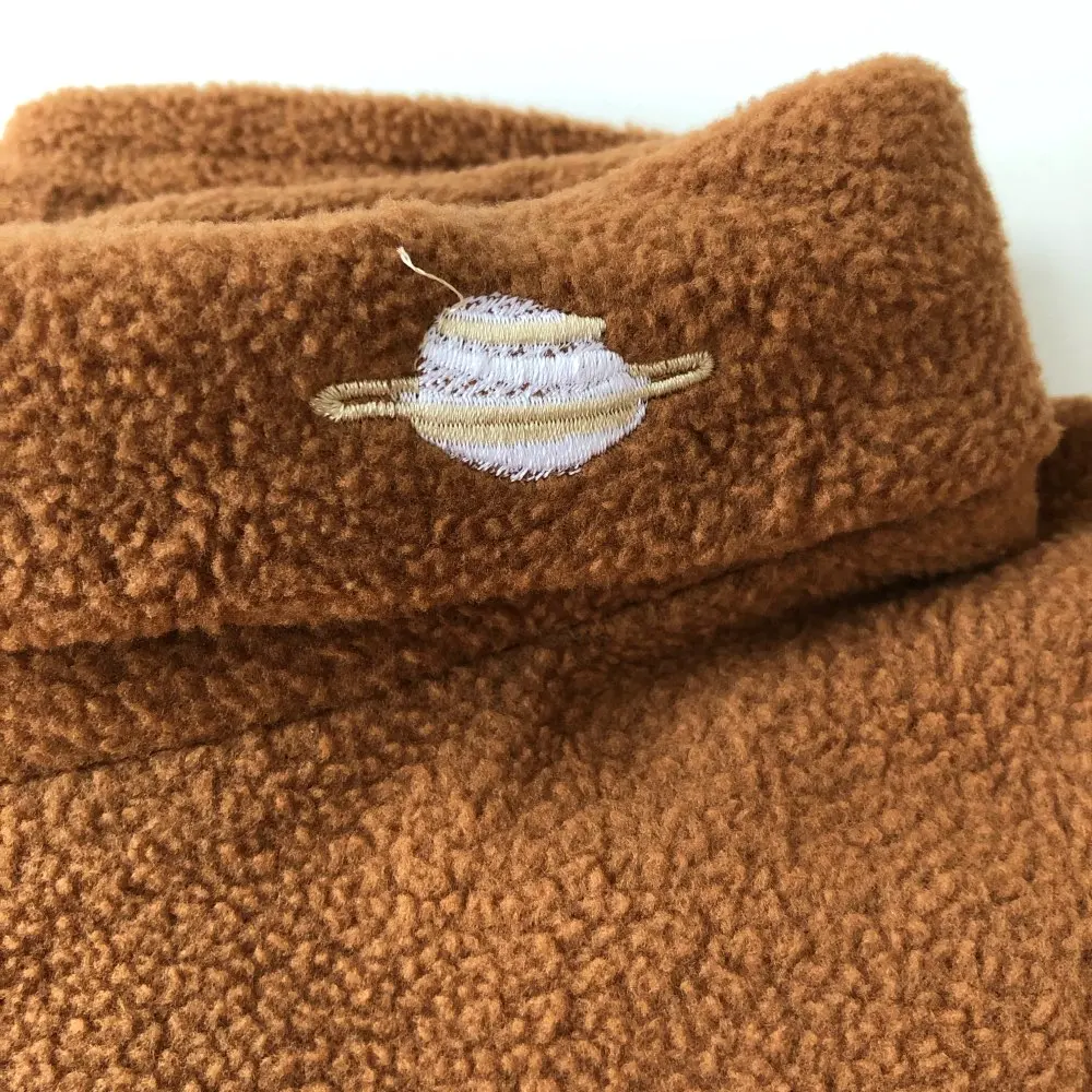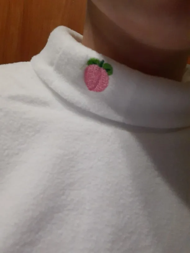 Really great material. Very thick and warm. Shipping was really fast, peach detail is really well done!