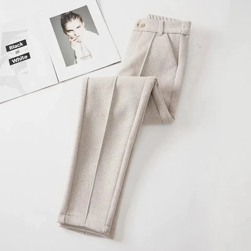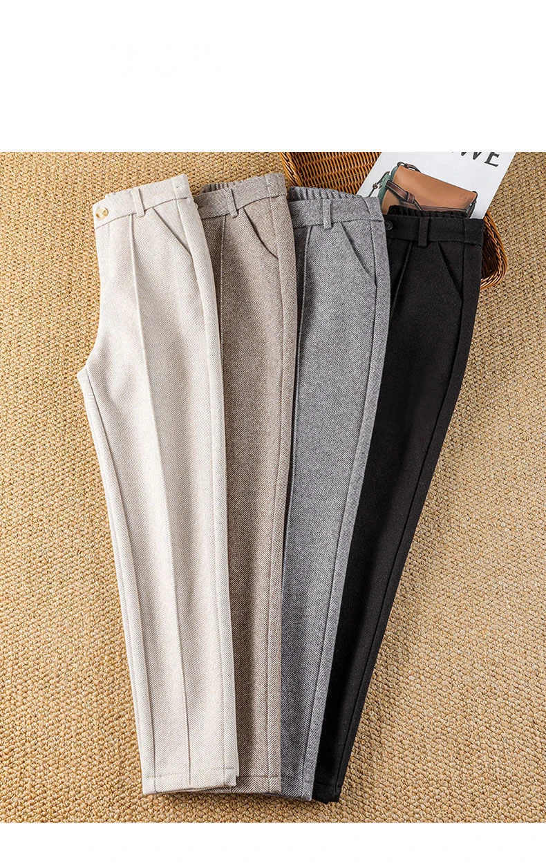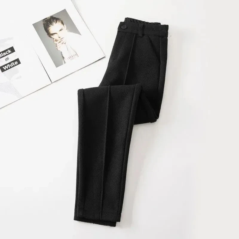 Korean style fashion solid color high waist thickened warm casual harem pants JKP6117
