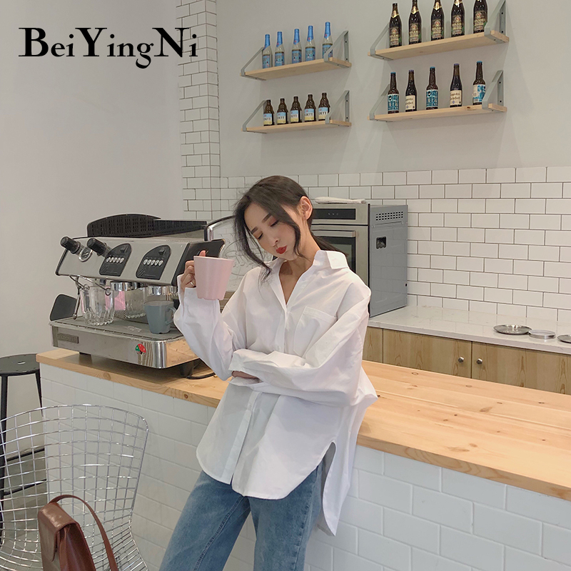 Korean Style White Oversized Shirts With Pockets JKP4531