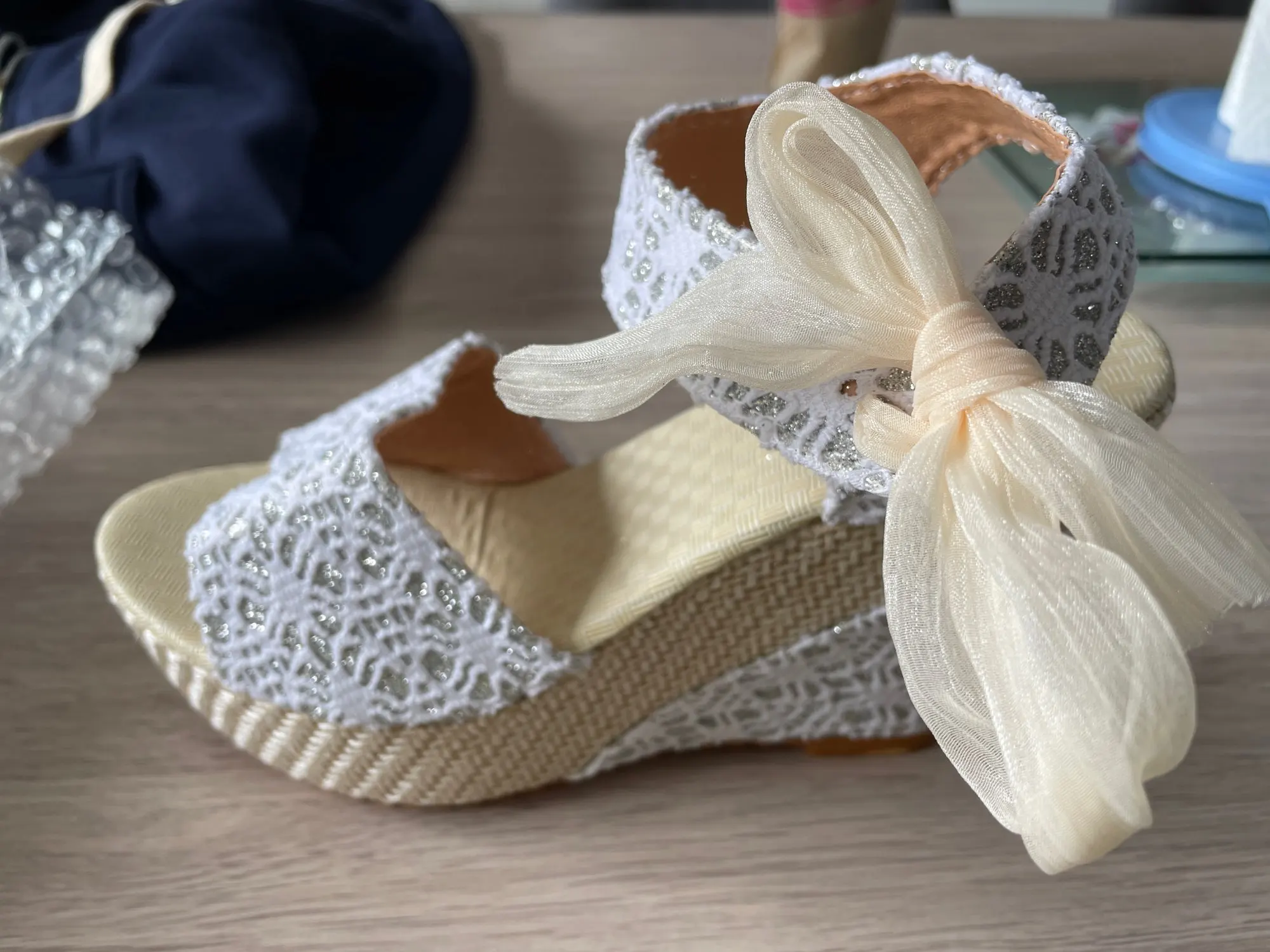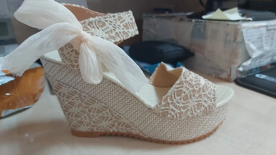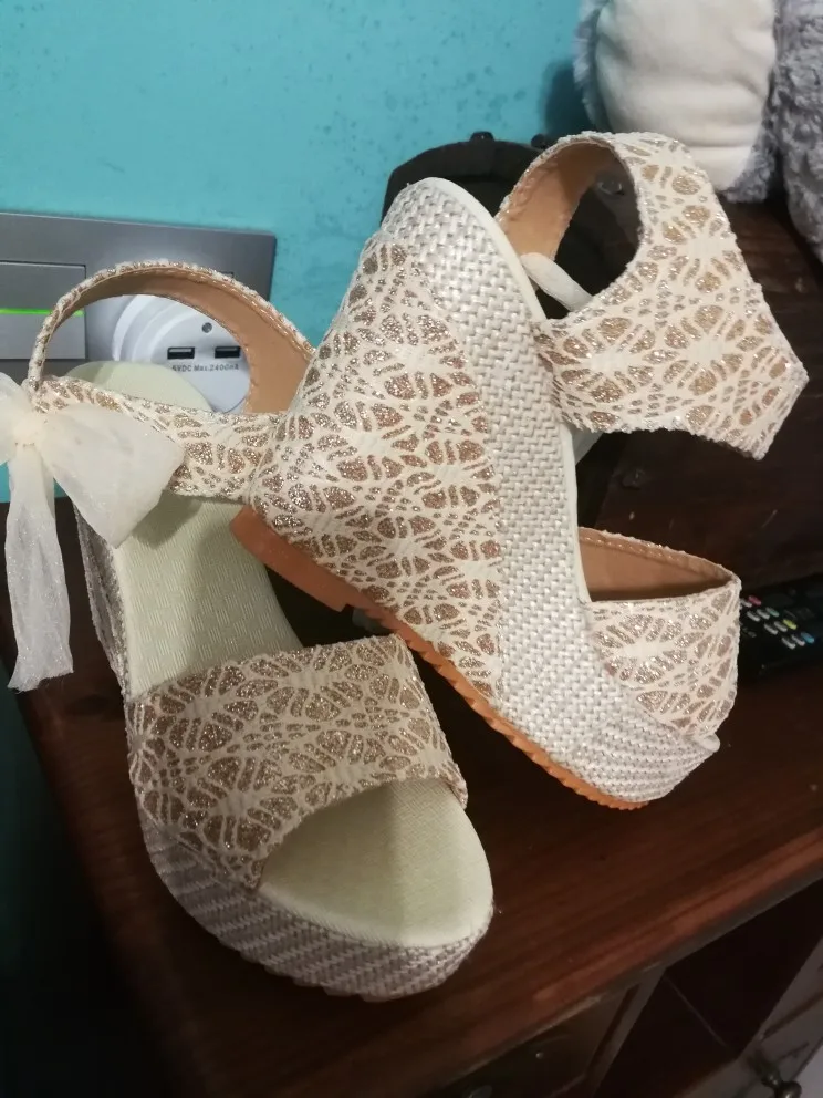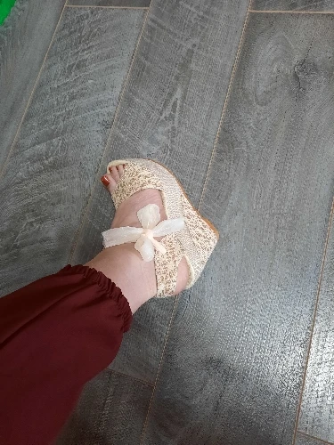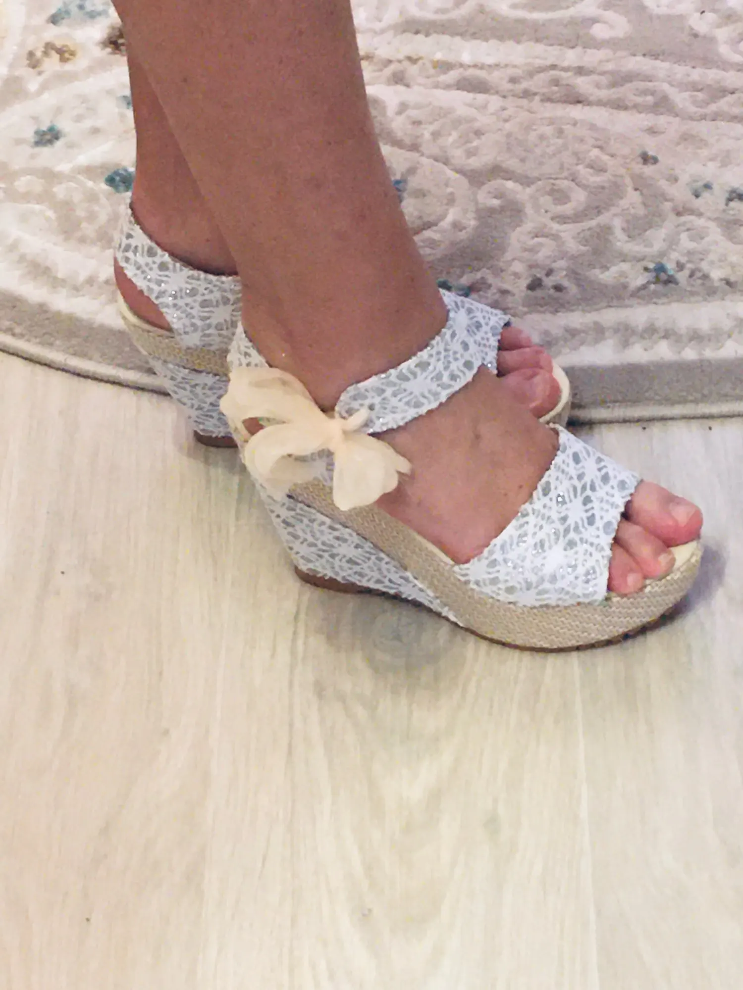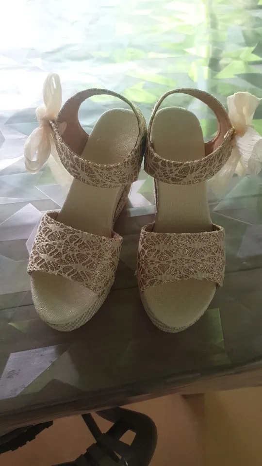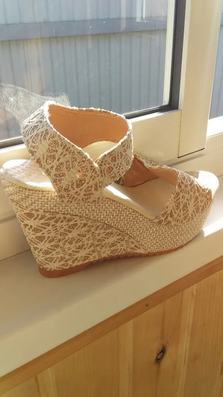 Sandals are amazing. Light, like down, comfortable and very beautiful. The bow makes them unusual and romantic. By the way, a very convenient fastener and make a size on the leg without iron locks, which usually rub the leg. For fans of white color and glitter. My size is clearly 36, took on reviews 37 and sat perfectly. Take one size larger than your own. In experience, I know that rag shoes in the summer are ideal for legs, not leather, or other material, because the heat and legs swell. Leather shoes are already good from autumn. And they are stable and very beautiful. And sexy. The store does not communicate at all, probably does not like buyers. The parcel came to Kiev very quickly. I recommend to buy!⭐& Middot;⭐& Middot;⭐& Middot;⭐& Middot;⭐& Middot;