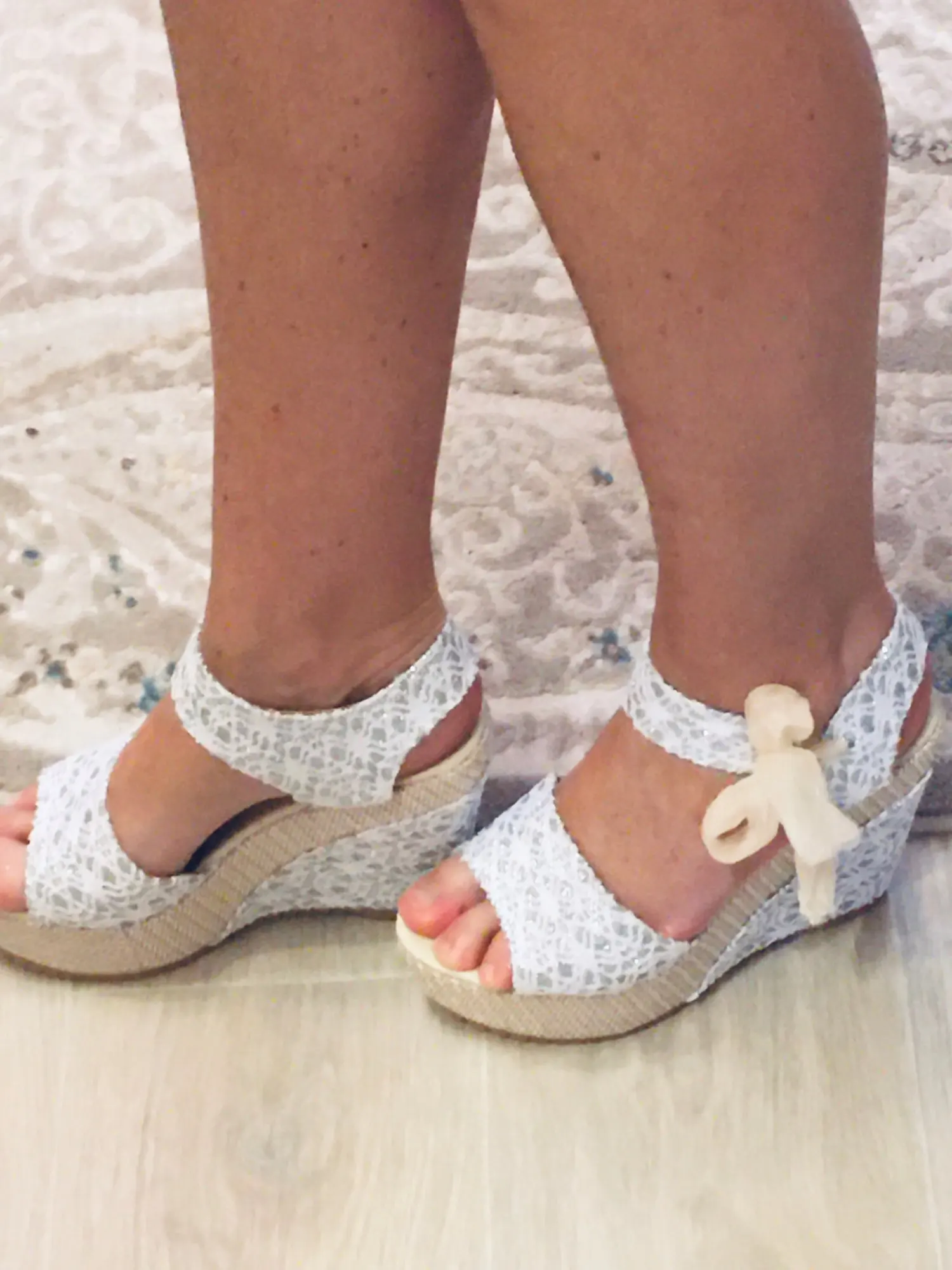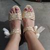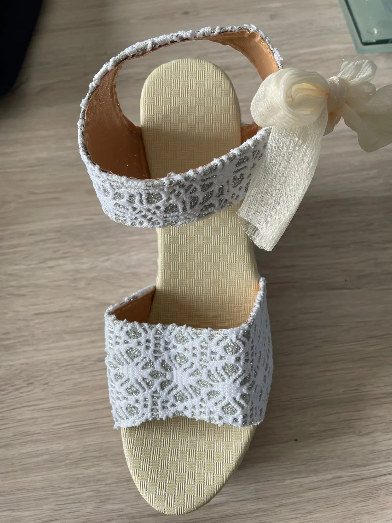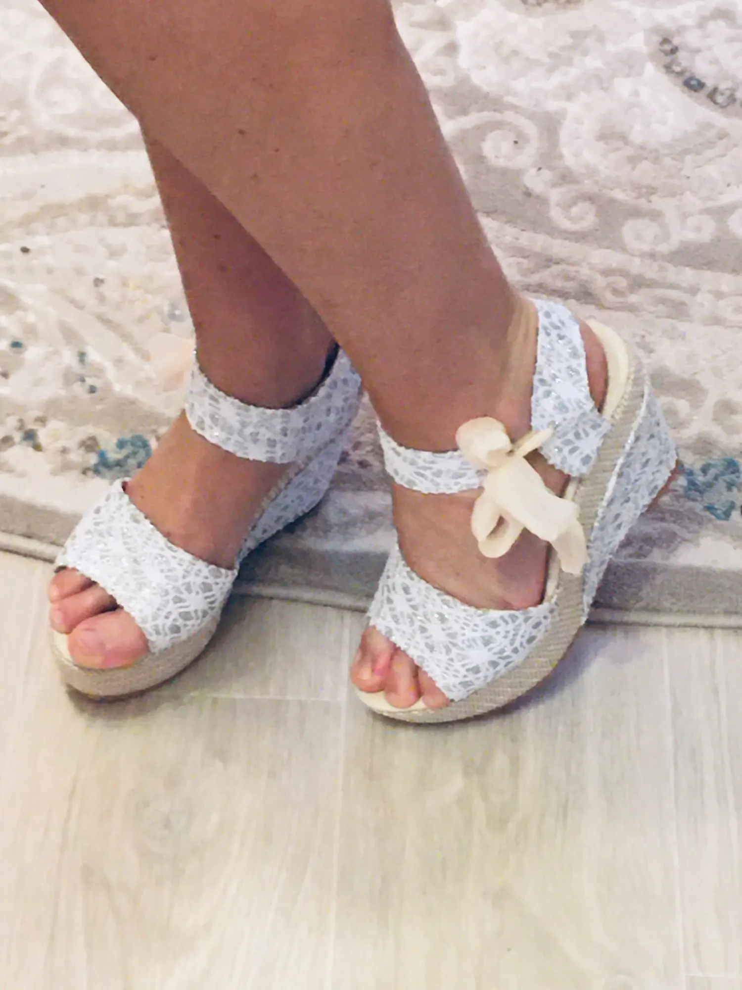 Sandals are amazing. Light, like down, comfortable and very beautiful. The bow makes them unusual and romantic. By the way, a very convenient fastener and make a size on the leg without iron locks, which usually rub the leg. For fans of white color and glitter. My size is clearly 36, took on reviews 37 and sat perfectly. Take one size larger than your own. In experience, I know that rag shoes in the summer are ideal for legs, not leather, or other material, because the heat and legs swell. Leather shoes are already good from autumn. And they are stable and very beautiful. And sexy. The store does not communicate at all, probably does not like buyers. The parcel came to Kiev very quickly. I recommend to buy!⭐& Middot;⭐& Middot;⭐& Middot;⭐& Middot;⭐& Middot;