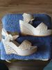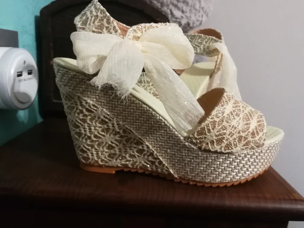 Shoes beautiful well made, no bad smell, prettier than the pictures in the listing. Only tiny minusik it piecie strap could be a little higher but don't mind it in anything. Shipping to UK in 8 days. Normally I wear size 38/39 (insole length 24cm) and wzięłam size 39 and are perfect. Shoes are quite high, koturna in highest place has 11cm, however not odczuwa up this height. Recommend