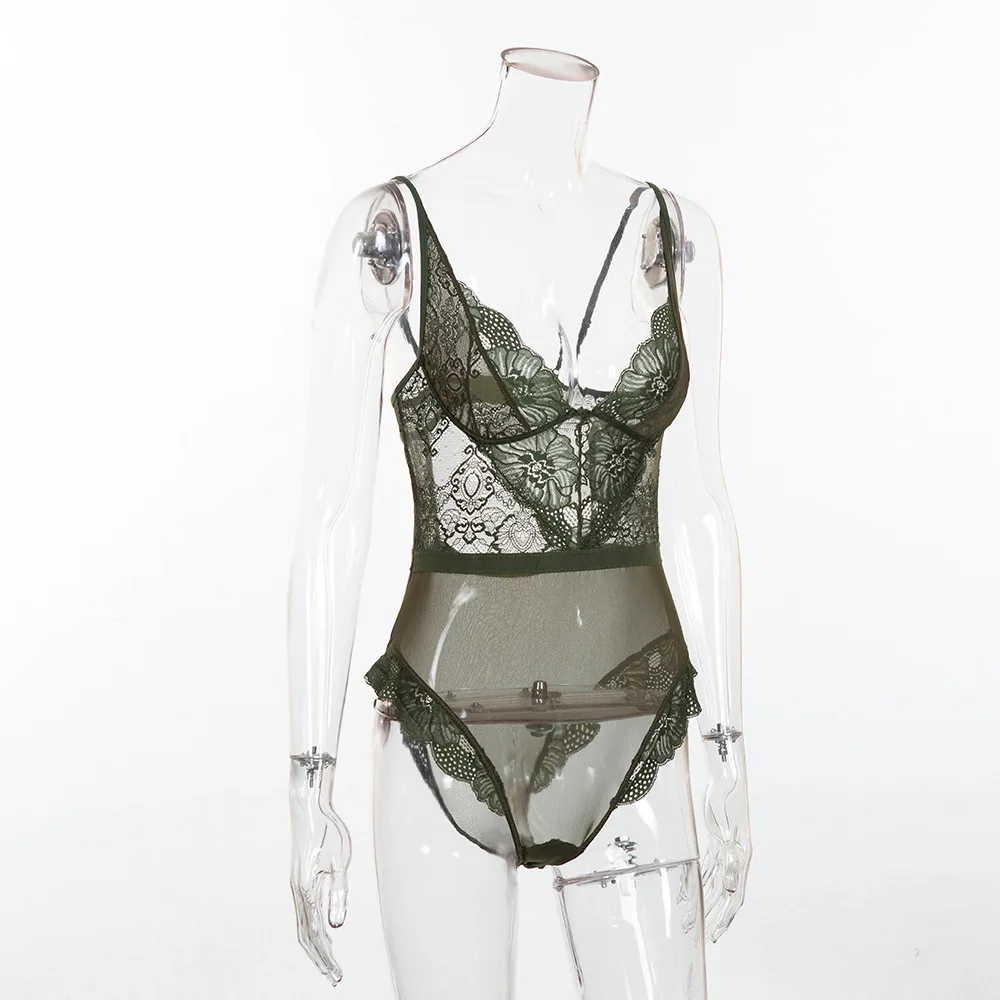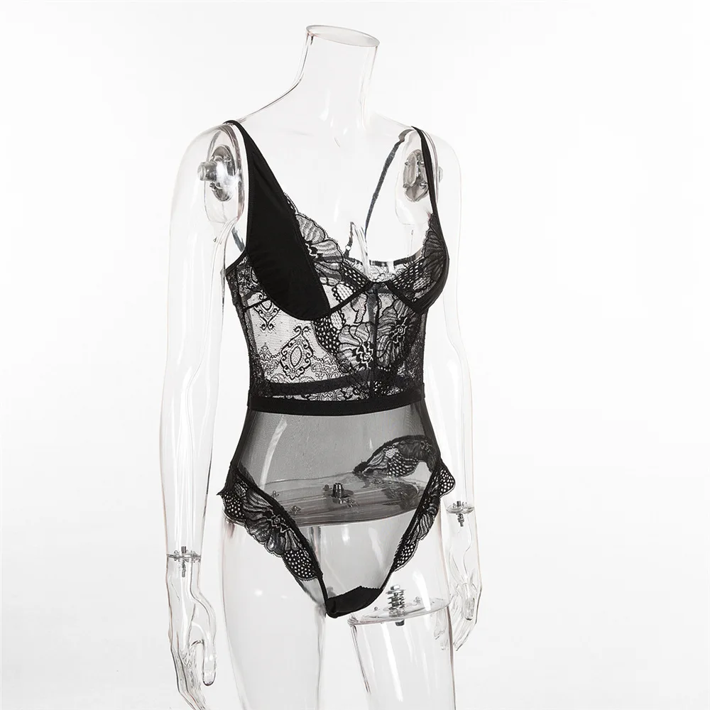Lace Bodysuit V Neck Sexy Bodysuit Women Teddies Catsuits Fashion Body Mujer Party Clubwear
