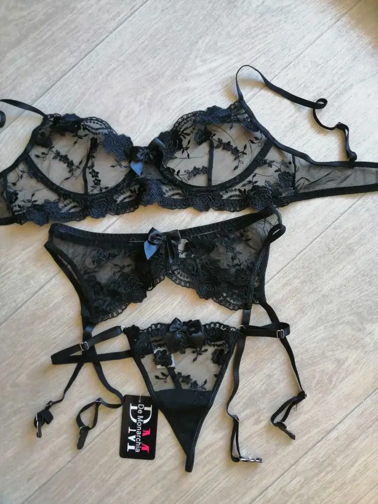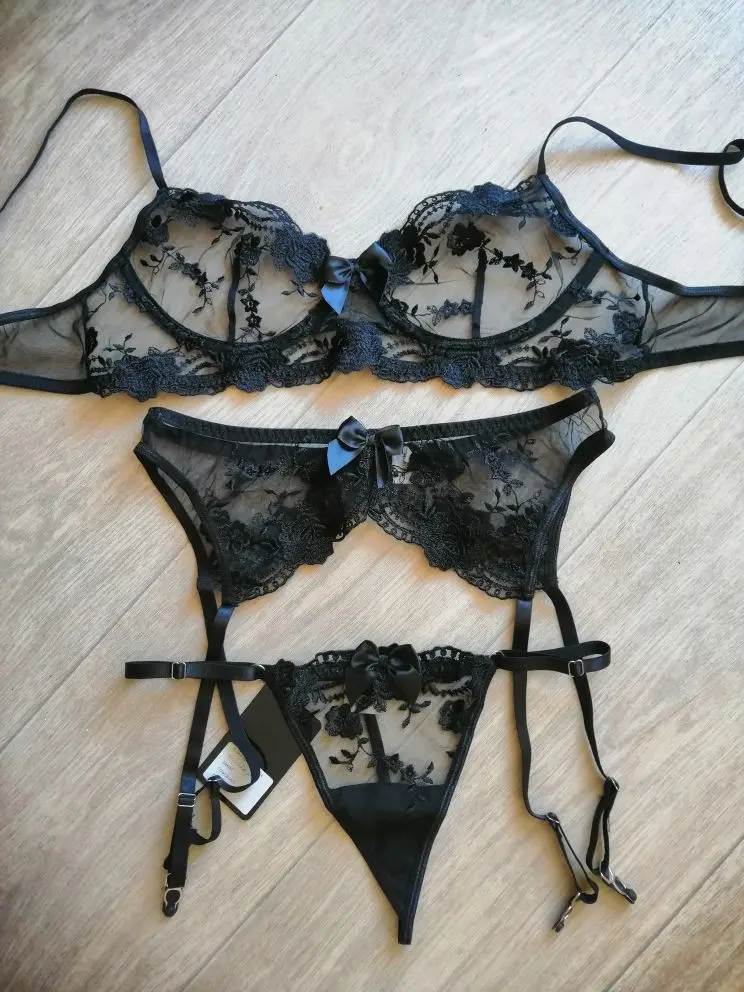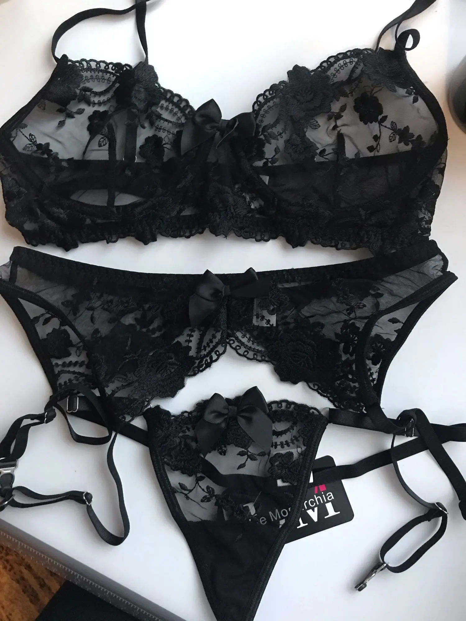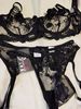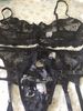 Lace Embroidery Lingerie Push up Bra Garters Thong 3 Piece