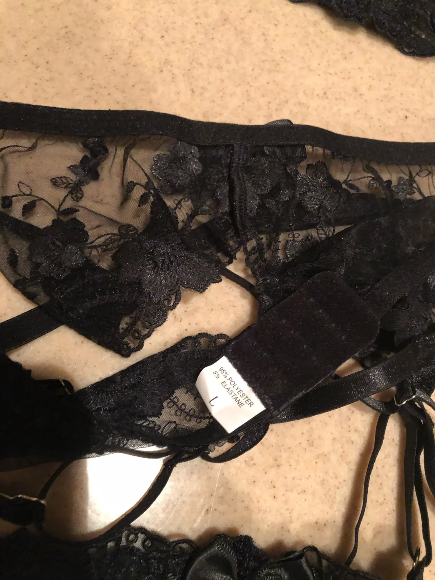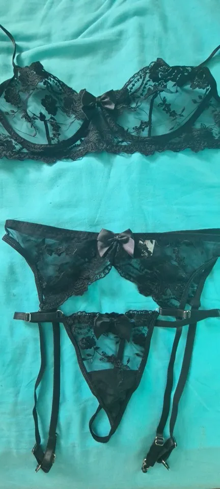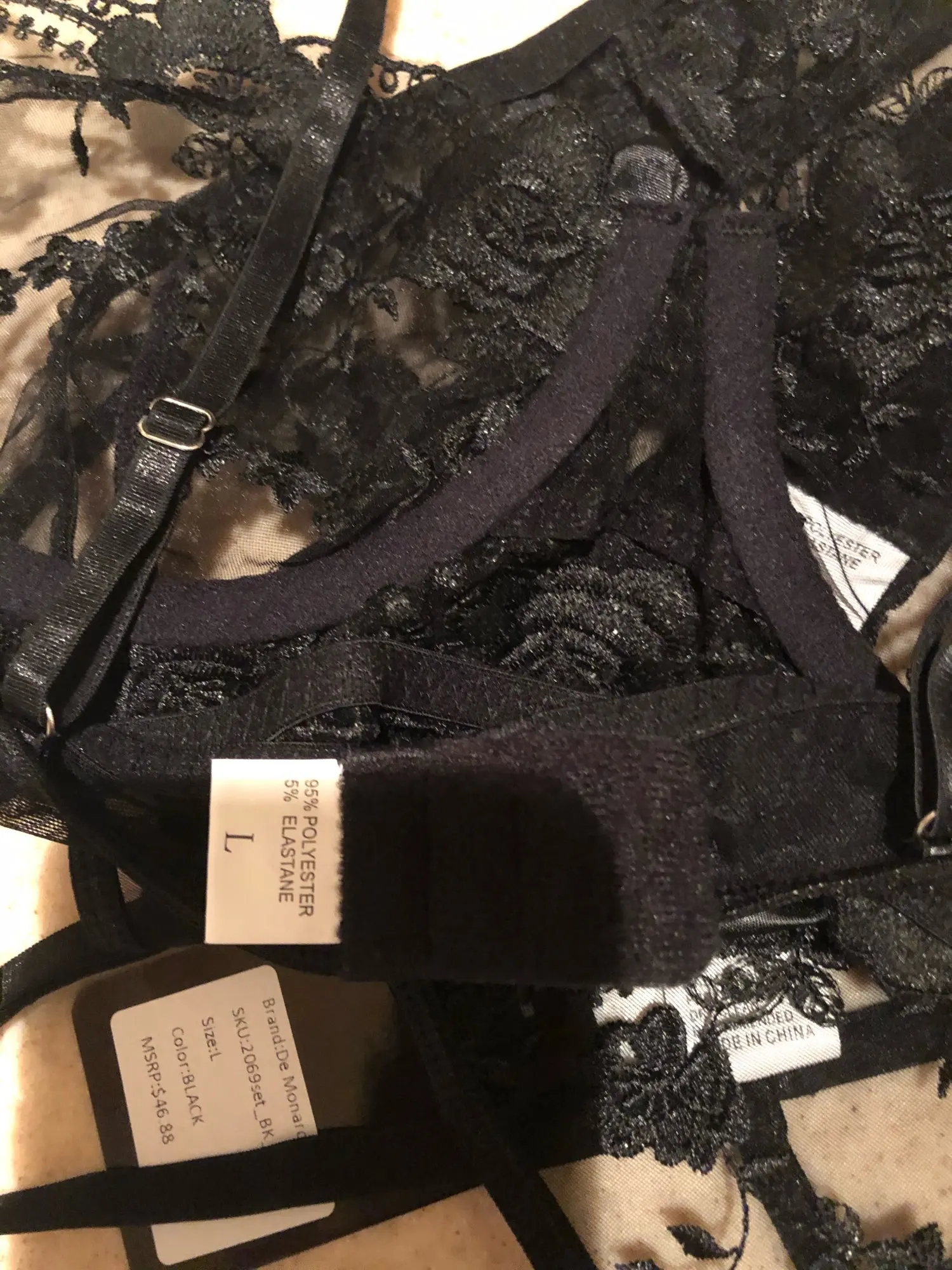 It really matches the description. Almost gotten M, but i decided to get S, and it fits perfectly. And true to measurement. The bra is very sheer but very good and thick. And yes. This set dies not have socks. Socks to be bought separately.